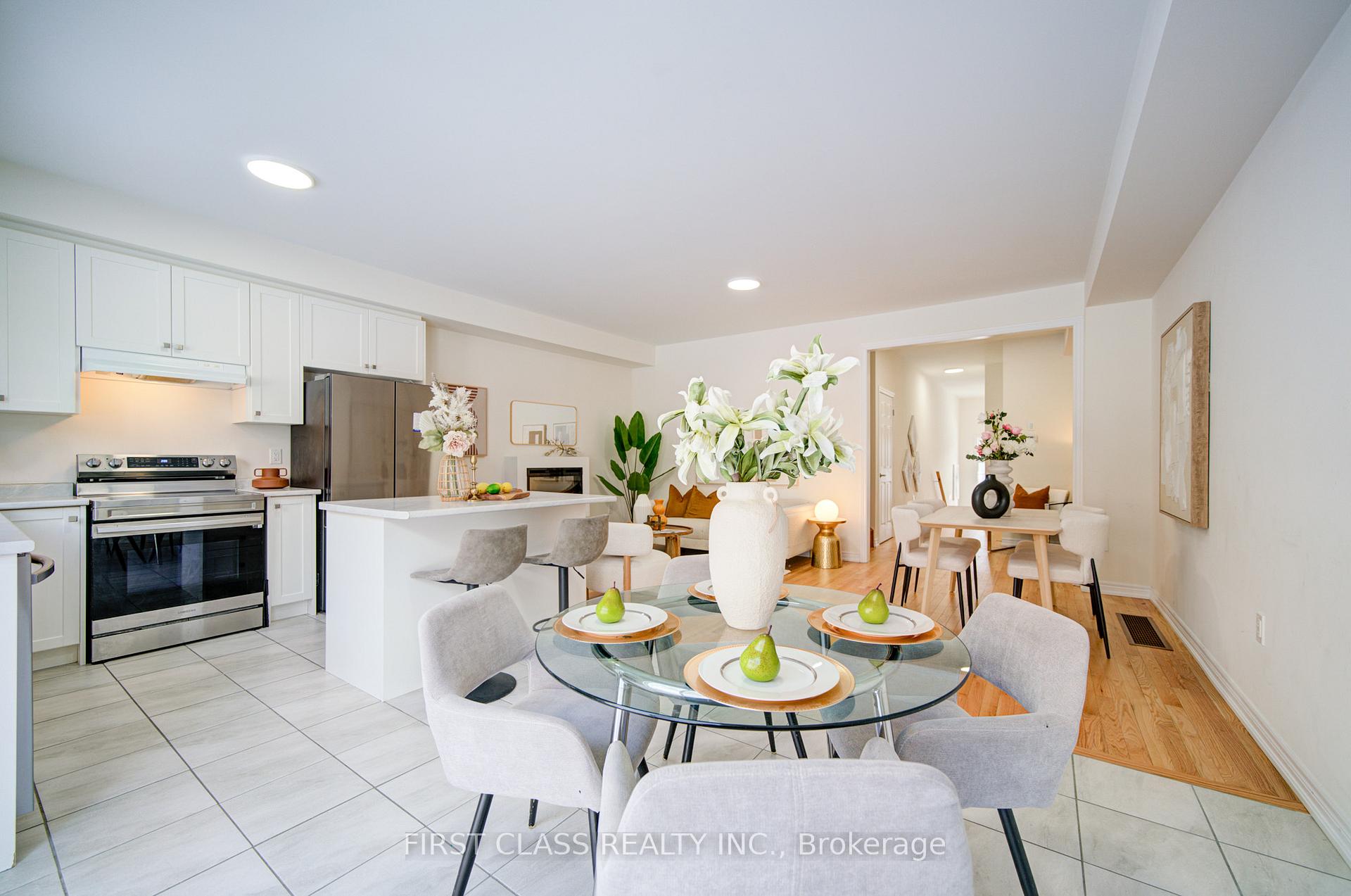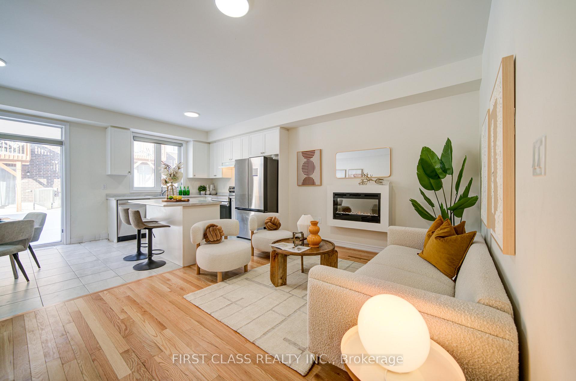 Freehold Townhouse in Seaton! 4 Bedrooms 3.5 bathrooms with long driveway and backyard. It's1836 sqft, bright, spacious, Modern design and open concept, 9 ft ceiling on Main Flr. Hardwood Floors In Living Room With Gas Fireplace, Large Window. Kitchen with Granite Countertops, Center Island, Double Sink, S/S Fridge, S/S Stove, S/S Dishwasher. Main Floor Access To Garage. 2 master bedroom ( one is 13ft ceiling with large windows ) with 4 pcs ensuite. Just minutes away from Highways 401, 407, and the Pickering GO Station, it offers easy access to schools, parks, trails, and more. Prime location close to highways, grocery stores, banks, transit, schools, restaurants, and shopping. Just minutes away from Highways 401, 407, and the Pickering GO Station. Dont's miss it. Move in Condition.