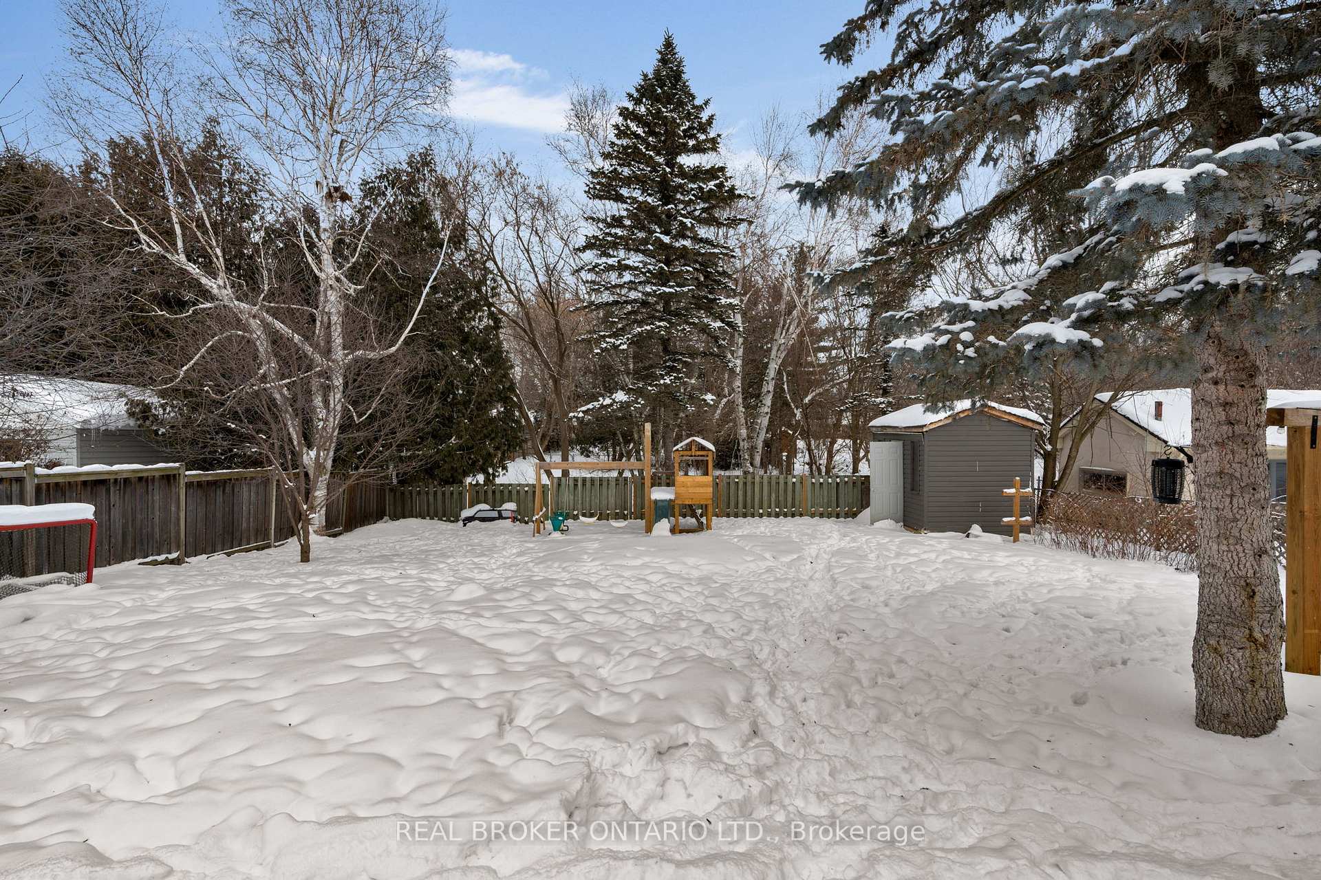 Surrounded by expensive homes this adorable ranch all brick bungalow (not garage) was renovated 2021and has a huge usable backyard with tons of trees and privacy! With plenty of parking we start off on theright foot before even stepping inside. Then once inside you will notice all of the flat ceilings and pot lightsRoomsPhotos(2021) as well as vinyl flooring and trim replaced (2021). The adorable ship lapped fireplace also hashandy storage on both sides and light beams in the massive window. Open to the dining room and kitchenthe flow works well and there is even a barn door to main floor laundry which also has access to the insidesingle car garage (which has pot lights). Onto the kitchen (refaced 2021) you will see sleek granitecounters with undermounted sink, pot filler, gas stove and backsplash. Down the hall three spaciousbedrooms all with the updated flooring and trim as well as one with a closet organizer and pot lights. Thereis also a deep linen closet and 4-piece updated bathroom. The welcoming back yard has massive deck(2023), storage shed (2022) and firepit area with string lights and built in swing. There are two cherrytrees and raspberry bushes as well. The breaker panel was also updated 2021. Right on school bus routemakes it easy for the kiddos, 8 minutes to Alliston, and 9 minutes to Base Borden