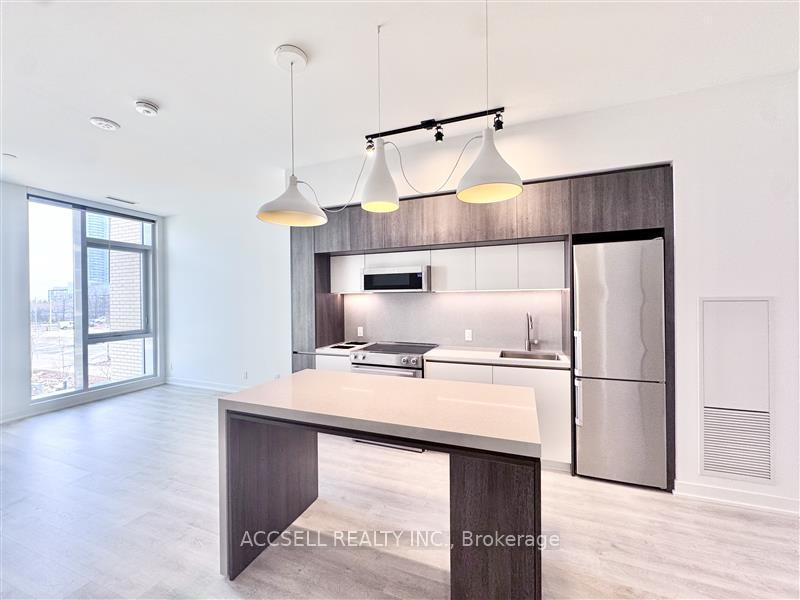 Welcome to this contemporary 1-bedroom, 1 bathroom condo, situated in the heart of Vaughan. Perfectly located just steps from the Vaughan Metropolitan Centre (VMC) and only minutes to Highways 407, 400, 401, and 427, as well as Vaughan Mills and Canada's Wonderland, this home offers the ideal blend of style and convenience. This open-concept unit is filled with natural light from the floor-to-ceiling windows and features sleek laminate flooring throughout. The highly functional eat-in kitchen is equipped with stainless steel appliances, including a microwave, stove, refrigerator, and dishwasher-making both everyday living and entertaining a breeze.