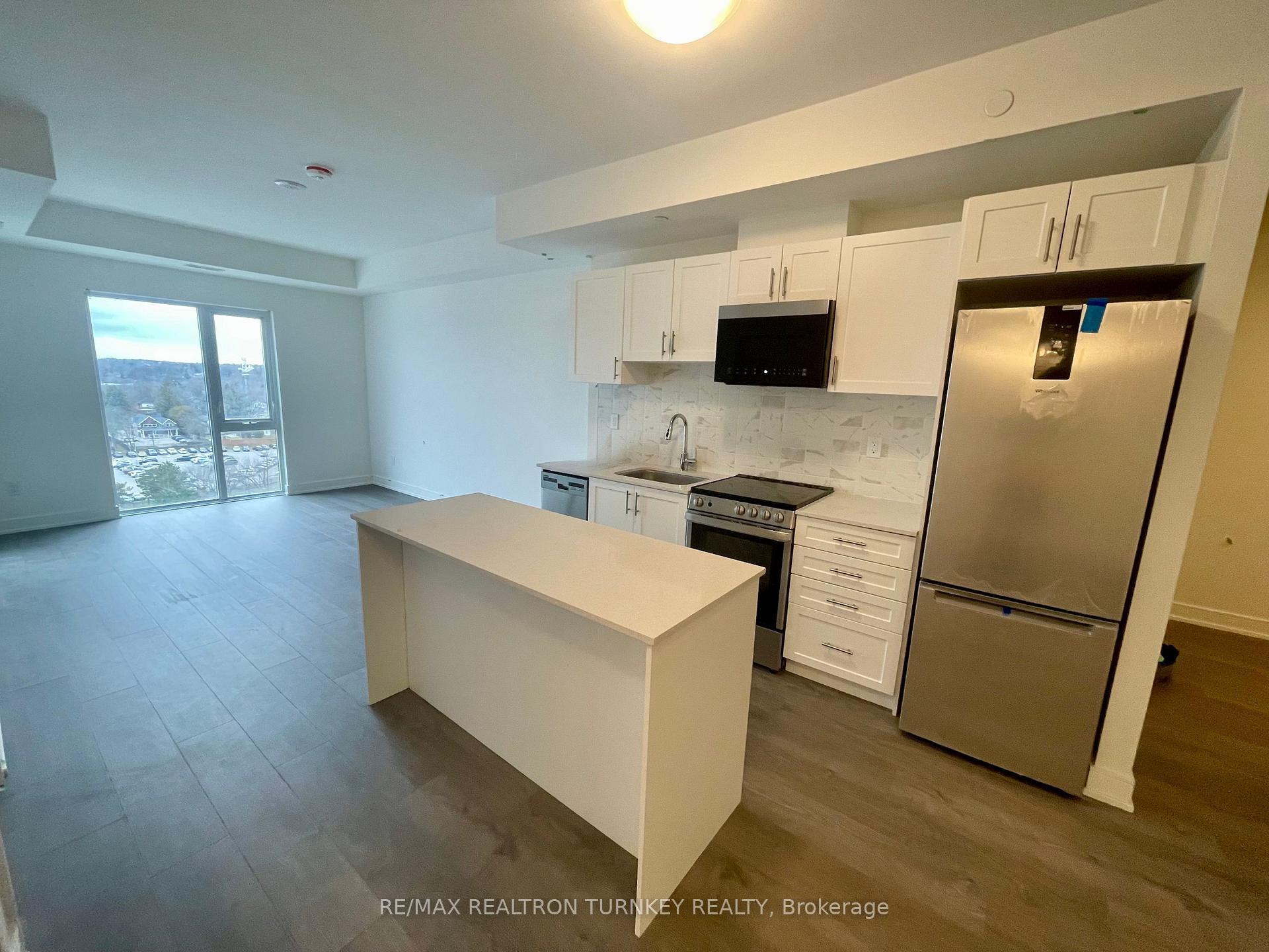 Spectacular Sunsets & Modern Living at Kingsley Square in the heart of Newmarket! Be the first to live in this brand new, never-occupied 1-bedroom + den condo with approximately 700 sq ft open-concept layout. This stunning suite offers 9 ft smooth ceilings and desirable west exposure, filling the space with afternoon light and breathtaking sunset views over the town. Step onto your private balcony and unwind as the sky transforms each evening.Inside, the modern kitchen features stainless steel appliances, white quartz countertops, and an upgraded island with breakfast bar, seamlessly connecting to the bright living area framed by floor-to-ceiling windows. The versatile den is perfect for a home office, guest room, or quiet retreat. Enjoy 9 ft Smooth Ceilings & Contemporary finishes throughout, including luxury vinyl plank flooring, ensuite laundry, and thoughtfully designed living space.One parking space and a locker are included, offering extra storage and added convenience. Kingsley Square is Newmarket's premier lifestyle community, with amenities including a fitness centre, yoga studio, entertainment lounge, pet wash, party room and guest suites. BBQ on the Rooftop Terrace, where a firepit and comfortable seating beckon residents for alfresco dining and rejuvenating time outdoors. Amenities are currently under development and will be available in the coming months. Ground-floor commercial shops and nearby plazas provide easy access to restaurants and services. Ideally located across from Southlake Regional Health Centre, steps to Davis Drive Transit and Newmarket GO Station, and minutes to Historic Main Street, Fairy Lake Park, Tom Taylor Trail, Upper Canada Mall, Highway 404, and the new Costco. A perfect opportunity for professionals and commuters seeking upscale, easy living. Start your next chapter at Kingsley Square!