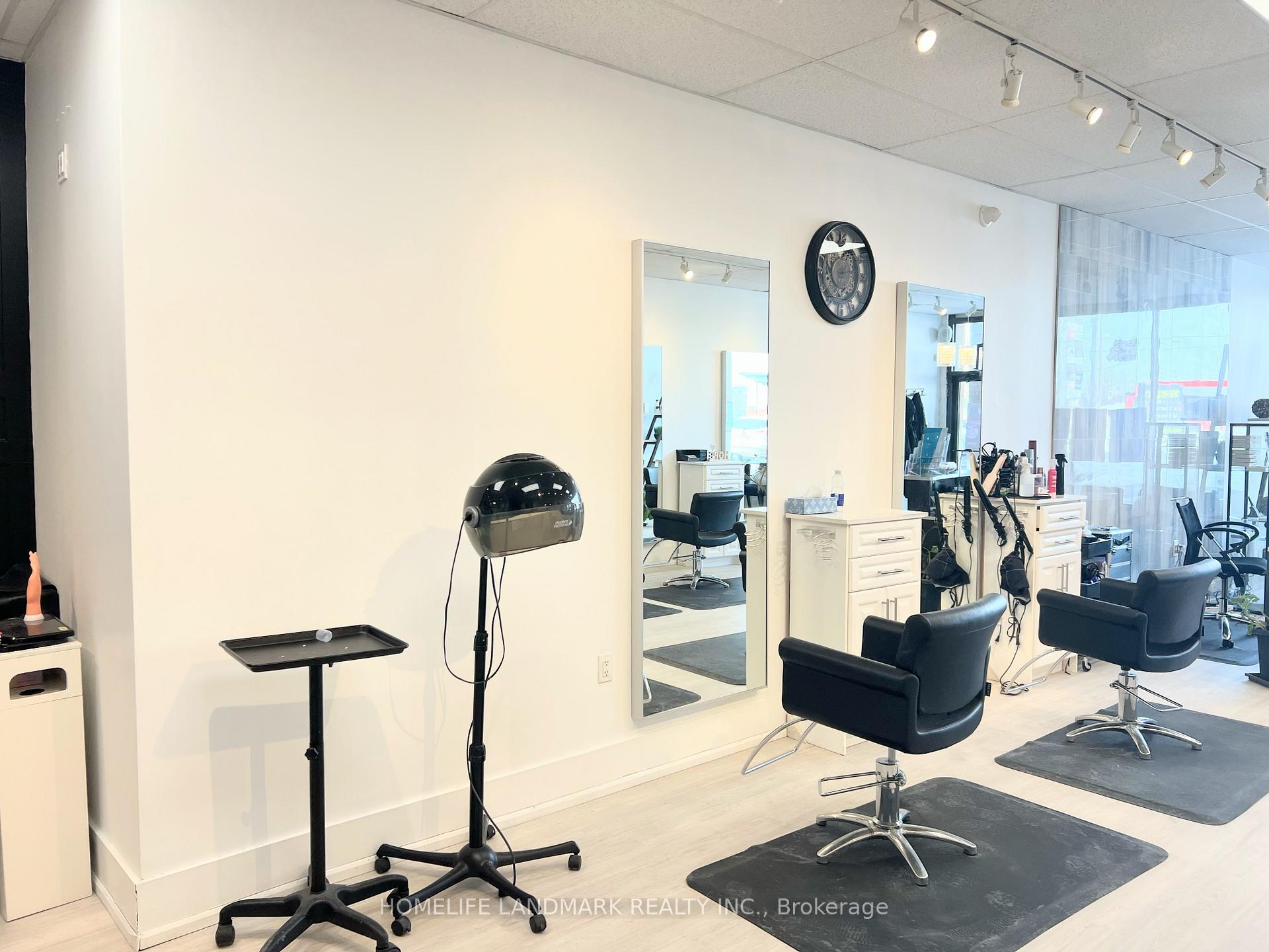 Fantastic Opportunity In The Heart Of Woodbridge! Excellent Busy Location HWY 7 Exposure With High Volume Clientele & Free Parking. Reasonable Monthly Lease With Renewal Option. 4 Esthetician Rooms which are rented out, 6 Hairstyling Stations, 2 Colorings And 2 Shampoo Stations, Washroom & Storage (Potentially A Massage Room). Very Attractive And Very Busy Salon In Prime Location! Very less Monthly Lease and Lease is 5 + 5 can be extended.