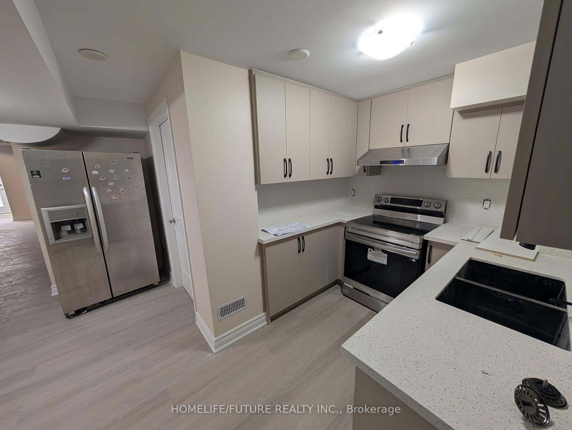 Newly Built Basement Apartment With A City Permit, With Two Bedroom, One Full Bathroom Lower Level, Separate Entrance! Parking Included. Within A Secure Community. Beautiful New Kitchen With Centre Island And Backsplash, Brand Stove With Modern Range Hood! Brand New Place And No One Lives Before (Insuite Laundry). In High Demand Community Area Legacy Community, Close To Local Amenities! Longo's, Rexall, Walmart, Costco And Medical Centre. Near Highly Rated Schools, Just Beside Parks, Easy Access To Highway 407 And Highway 7.