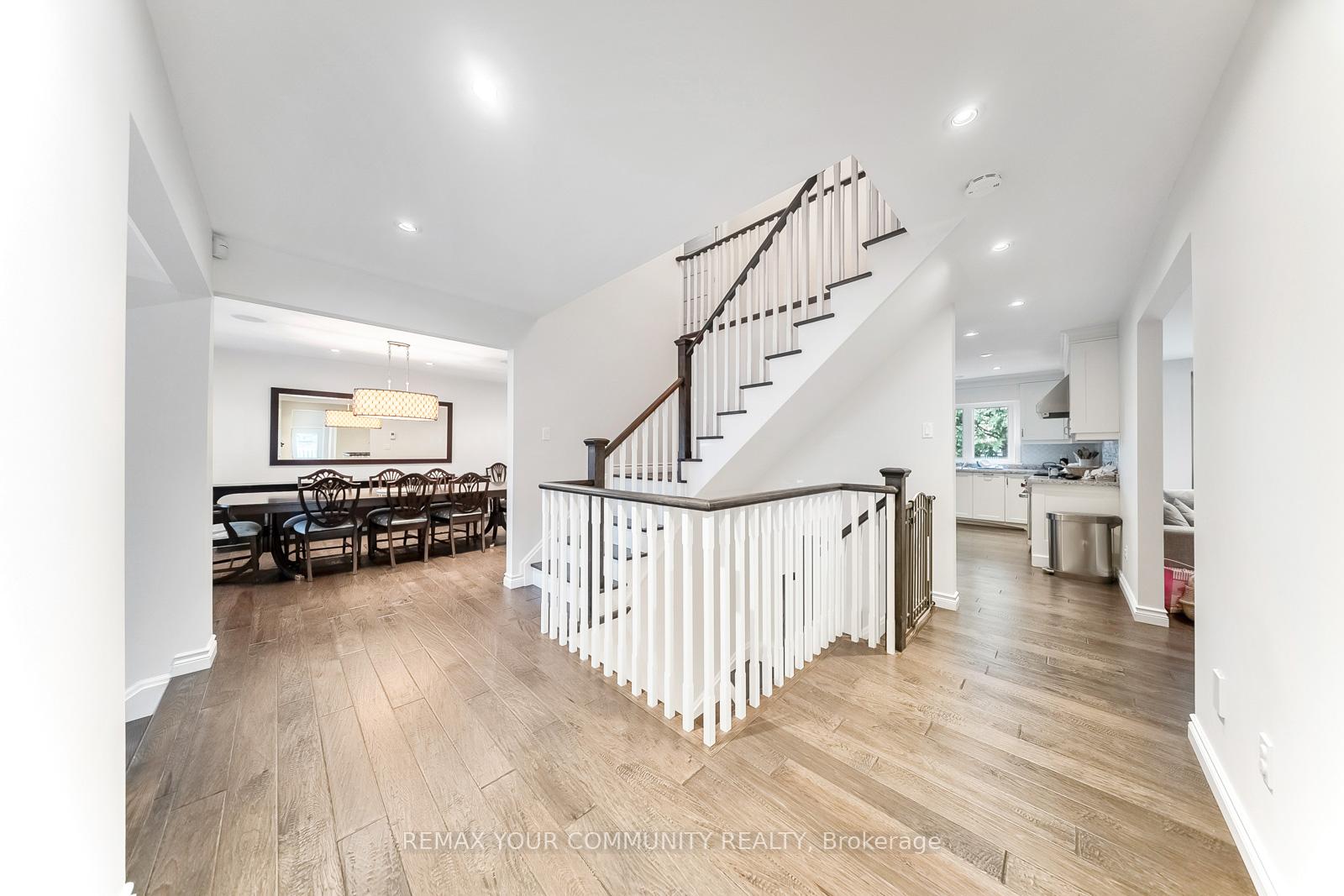 Welcome to 8 Spinning Wheel Court, a distinguished, fully renovated family estate quietly positioned on an exclusive cul-de-sac in the prestigious Bayview Glen enclave. Set on a rare, oversized pie-shaped lot, this exceptional residence offers a seamless blend of refined elegance, thoughtful design, and private resort-style living. Expansive principal rooms are impeccably proportioned and filled with natural light, creating a grand yet intimate setting ideal for sophisticated entertaining and elevated everyday living. The chef-inspired kitchen is a true showpiece, featuring extensive custom cabinetry, a substantial centre island, and a sunlit breakfast area designed for family gatherings and effortless hosting. The adjacent family room, anchored by a gas fireplace, enjoys tranquil views of the lush, landscaped backyard, offering an atmosphere of warmth and understated luxury. Step outside to a secluded outdoor sanctuary, where an expansive deck provides an exceptional setting for alfresco dining, lounging, and entertaining, surrounded by mature greenery and complete privacy. The main level is thoughtfully curated and includes a formal dining room, an elegant mudroom, direct interior access from the double garage, a refined powder room, and main floor laundry. Upstairs, the primary suite is a serene retreat, featuring a spacious walk-in closet and a spa-inspired ensuite designed for relaxation. Three additional generously sized bedrooms and a beautifully appointed four-piece bath complete the upper level. The finished lower level extends the home's versatility, offering a sophisticated recreation space, private gym, three-piece bath, and abundant storage. A rare offering on one of Bayview Glen's most coveted cul-de-sacs-delivering privacy, prestige, and a truly elevated family lifestyle.