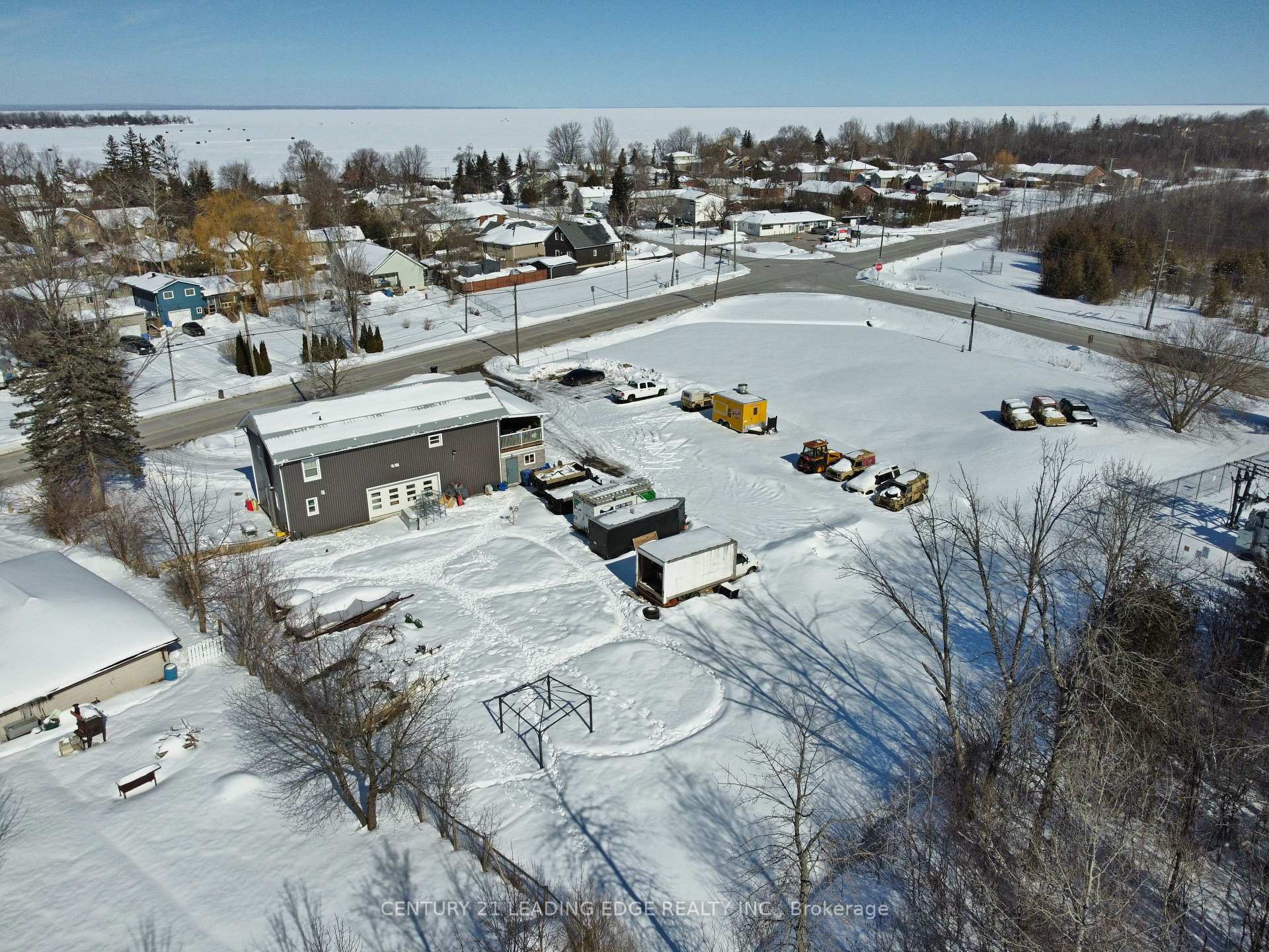 Prime high-visibility commercial corner in Georgina with potential for future development! 1035 Metro Road North offers a rare C2-zoned, 2-storey building on approximately 1.4 acres at Woodbine Avenue & Metro Road North, directly across from the LCBO/convenience store. With 2,740 sq. ft., 28 parking spaces, ample outdoor storage, and approval for a refreshment vehicle, this property delivers exceptional exposure and flexibility. The main floor features two retail/commercial units, a 2-piece washroom, and a Health Unit-approved commercial kitchen currently operating as a bakery. A 16' x 7' drive-in garage door supports efficient deliveries and service operations, complemented by aluminum storefront windows/doors and a fire-rated suspended ceiling. Upstairs, a legal 3-bedroom, 2-bathroom apartment with ensuite laundry and a 24' x 10' covered porch is ideal for owner-occupancy, staff housing, or rental income, with potential to convert to office space. Extensively renovated, the building includes a metal roof, 22-gauge siding, updated insulation, drywall, lighting, flooring, plumbing, electrical, and radiant heating. The commercial space offers 200-amp, 240V single-phase hydro, a Weissman propane boiler with on-demand hot water, and a fully equipped kitchen (double sink, hand-wash station, stove, hood fan, 20-amp/40-amp outlets). Municipal services, fibre internet, and cable are available. Permitted signage for up to three 4' x 8' signs enhances visibility. C2 zoning allows a wide range of uses including restaurant, retail, office, clinic, veterinary, catering, garden centre, motor vehicle sales, service shop and more. Ideally located near Lake Simcoe, beaches, parks, Sibbald Point Provincial Park and The ROC, the property benefits from strong local and seasonal traffic, with easy access to Highway 404, Highways 48 and 12.