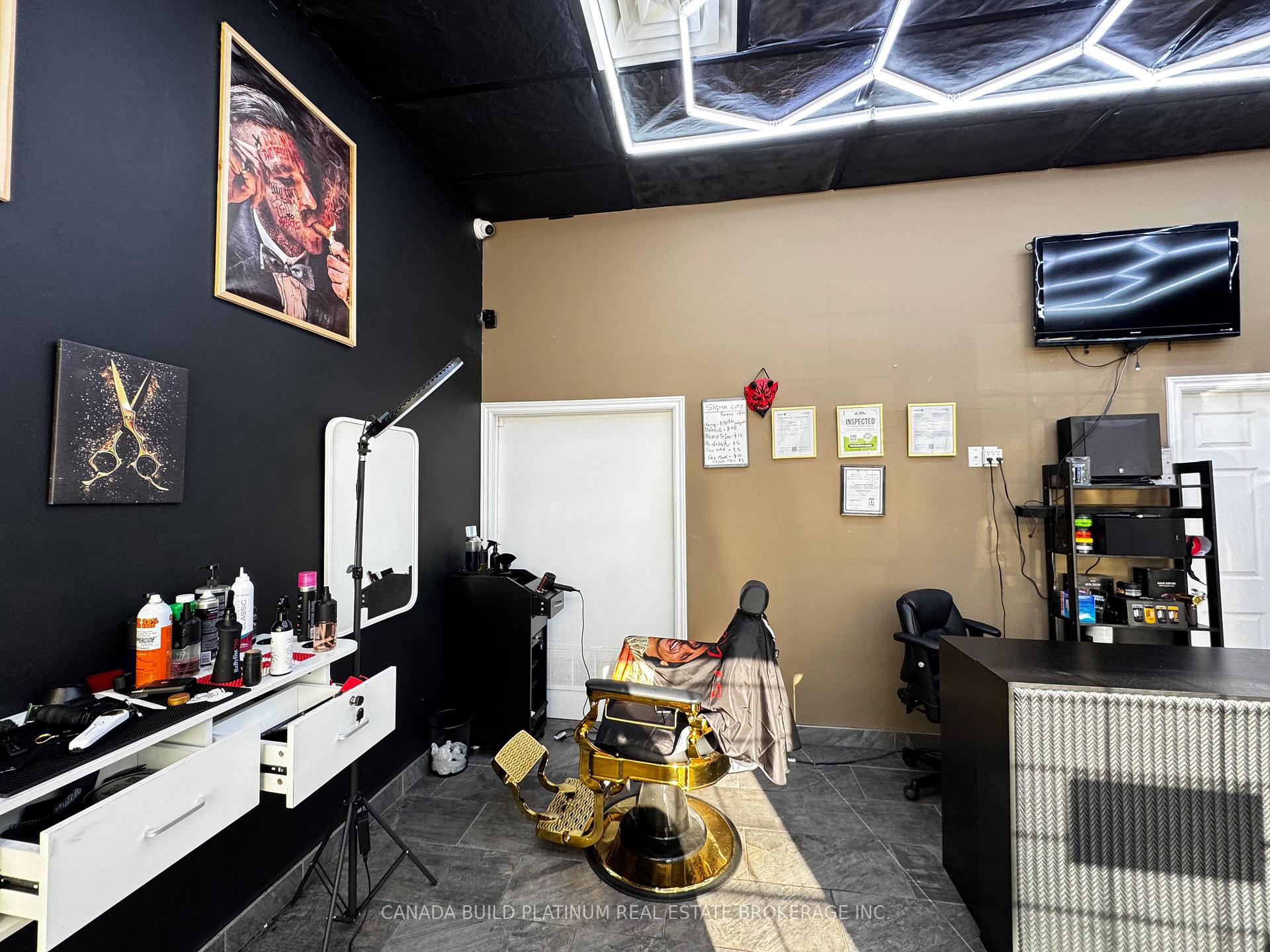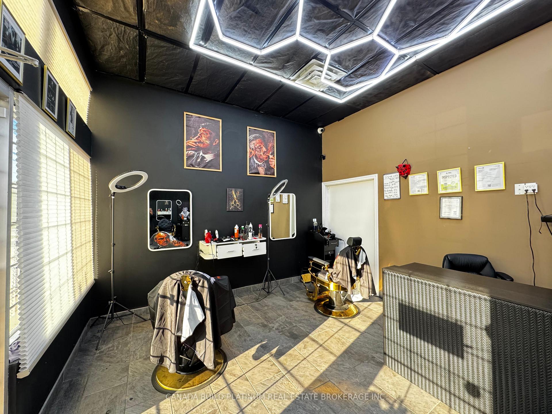 Turnkey barbershop for sale in a prime North Barrie location! This well-established business sits on a busy main road, close to a bus stop and Johnson Beach, offering excellent visibility and steady walk-in traffic. The shop features 16 parking spots, a separate unit with a kitchen, storage room, and washroom. It's fully equipped and beautifully set up with 4 newly styled golden barber chairs, 4 individual drawer stations, additional shelving and storage, 3 ring lights, a reception desk, head wash station, 8 customer chairs, first aid kit, and display shelves for retail products. Includes all barbering tools and products-ready for immediate operation. Enjoy affordable rent that includes TMI and utilities, with flexible lease options available. An excellent opportunity to own a profitable business-be your own boss today