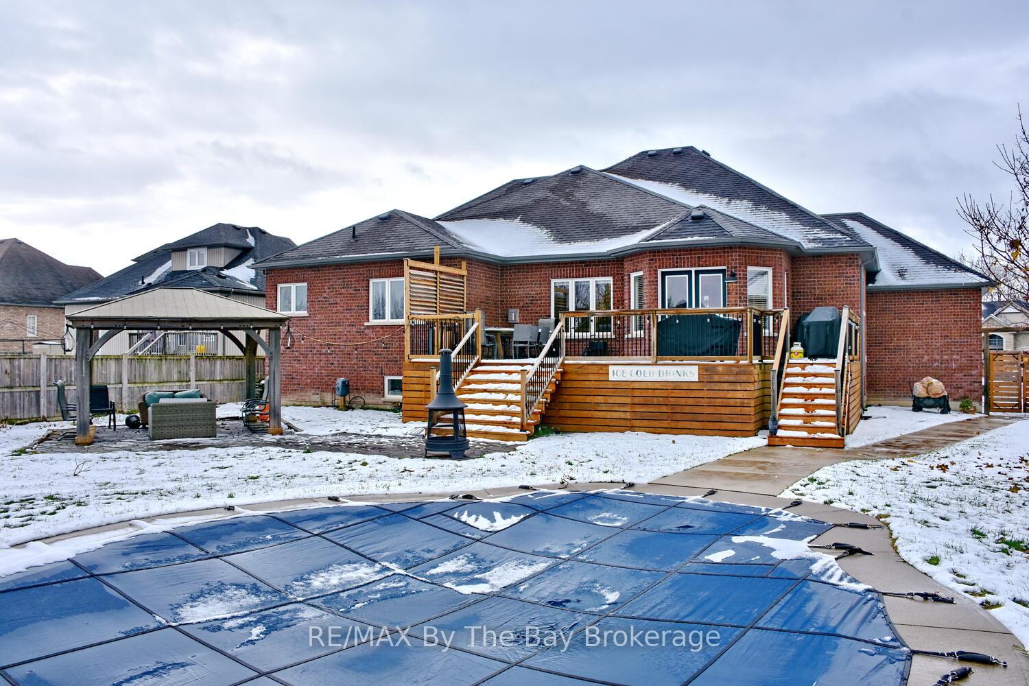 Welcome to this impressive all-brick home offering over 1,900 sq. ft. of main floor living space plus a fully finished basement. Situated on a large, fenced-in lot, this property is perfect for family living and entertaining alike. The backyard oasis features a heated in-ground saltwater pool, two gazebos, and a spacious deck for summer gatherings. A concrete walkway leads to the inviting double front doors, creating great curb appeal. Step inside to a large, welcoming foyer that opens to an airy, open-concept layout. The upgraded kitchen includes quartz countertops, stainless steel appliances, and a convenient island for casual dining. The adjoining family room offers a cozy gas fireplace and plenty of natural light. The main level features three generous bedrooms, including a large primary suite with a full ensuite bath complete with a separate shower and stand-alone soaker tub. The main floor laundry provides easy access to the double car garage with inside entry. Downstairs, the fully finished basement expands your living space with a huge rec room, a built-in bar area, two additional bedrooms, a newly renovated 3-piece bath with an oversized glass shower, and a second laundry room-ideal for guests or extended family. This home truly combines style, comfort, and functionality both inside and out. A must-see property for anyone seeking move-in-ready living with an incredible backyard retreat.