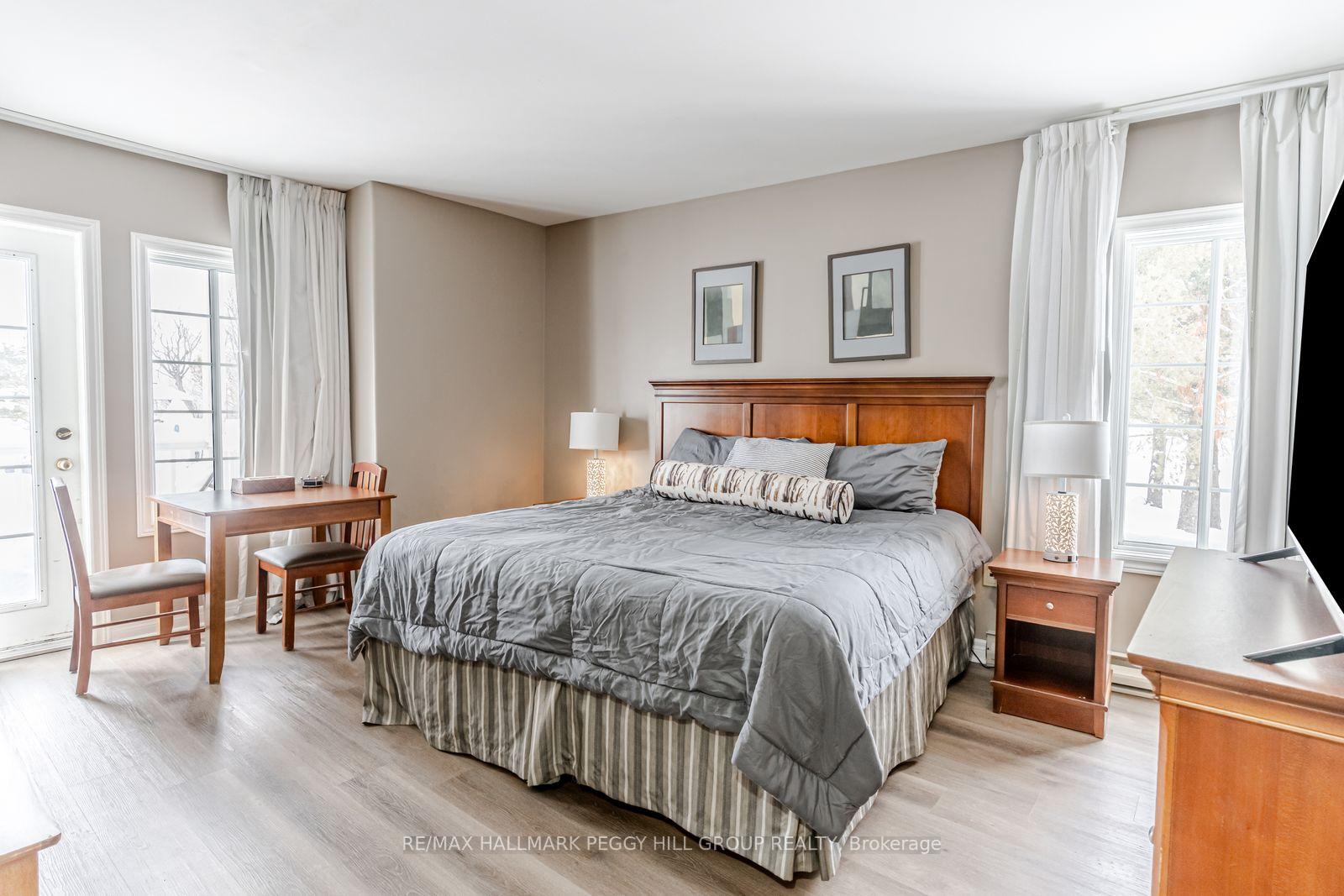 FULLY FURNISHED, ALL-INCLUSIVE SUITE WITH EASY ACCESS TO HORSESHOE VALLEY SKI HILLS! Life at Horseshoe Valley runs on fresh air and fun plans, with the ski hills right outside and year-round adventure setting the pace from first tracks in winter to trails, golf, hiking, mountain biking, and dirt biking when the snow melts, plus the option to reset at Vetta Spa whenever you feel like trading adrenaline for calm. This fully furnished bachelor suite delivers a turnkey setup that lets you unpack and start enjoying the lifestyle right away, with a bright, open studio layout featuring a king bed, a pull-out sofa for flexibility, a two-seat dining space, and a dresser and TV for relaxed nights in. Step out to the open balcony and take in the crisp Valley air, or head straight to the resort-style amenities, including indoor and outdoor pools, a hot tub, gym, clubhouse, BBQ areas, volleyball courts, and a playground, where every day can feel like you're on vacation even if it's a Tuesday. A compact kitchenette with a mini fridge, microwave, sink, and storage cupboards keeps meals simple, while a well-kept bathroom with a glass-enclosed shower and generous vanity adds that hotel-style ease. Available on a minimum one-year lease, this condo also includes shared laundry with one other unit in the entrance hallway, unreserved common parking, and an all-inclusive setup with utilities, cable, and high-speed internet covered, so your plans can stay focused on the hills, the trails, and the downtime you actually want.