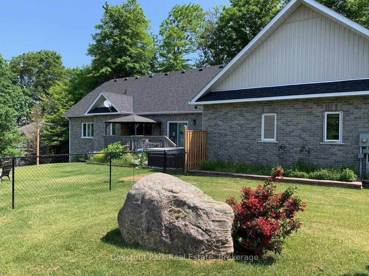 Tucked away on a picturesque, tree-lined half-acre lot in the desirable community of Moonstone, this stunningly renovated bungalow offers the perfect blend of modern elegance and country charm. With substantial renovations and upgrades since 2021, this move-in-ready home is an absolute showpiece. The main floor boasts soaring vaulted ceilings, an open-concept layout flooded with natural light, and in-floor radiant heating throughout for year-round comfort. The completely renovated kitchen is a chef's dream, seamlessly connecting to the dining area, where a beautiful gas fireplace sets the perfect ambiance. Step outside to the expansive deck with a hot tub and fully fenced yard, ideal for entertaining or unwinding under the stars. This home offers three spacious bedrooms on the main level, as well as a home office--an ideal setup for remote work. Additional updates include renovated bathrooms (main floor 2024, primary ensuite 2025), a new roof (2024), and a new heat pump (2025). The fully finished lower level is built for enjoyment, featuring a Rec Room, Bar, Bedroom, 3 pc. bathroom, with a walkout that offers potential for a separate basement suite entrance. Completing the home is an oversized, insulated three-car garage with in-floor radiant heating, perfect for extra storage or workshop space. Located just five minutes from St. Louis Moonstone Ski Hills, this incredible home offers four-season recreation at your doorstep. Don't miss this rare opportunity to own a beautifully designed retreat in one of the area's most sought-after locations!