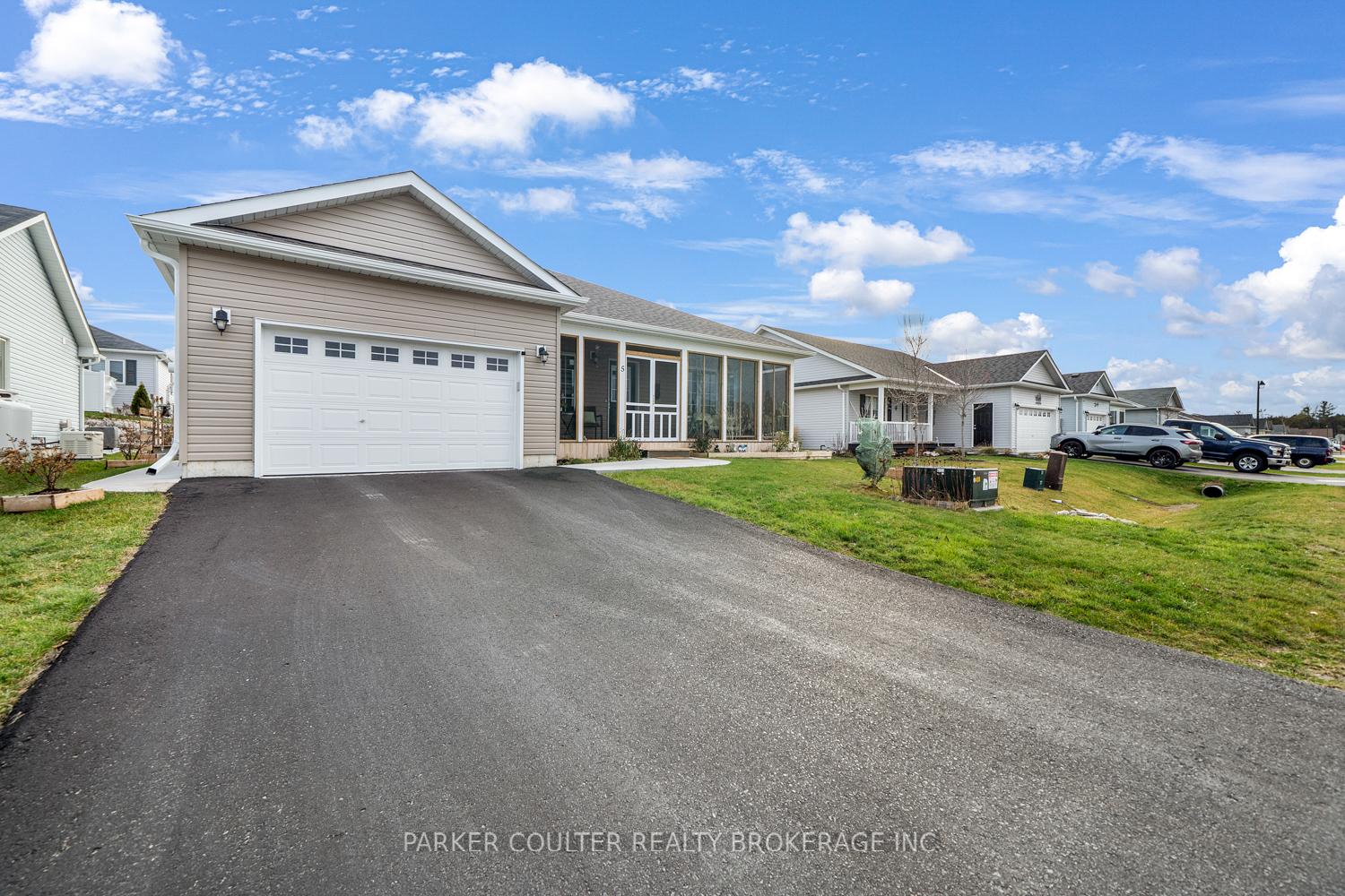 Welcome to Lake Point Village, a vibrant adult community offering an array of activities including game nights, book clubs, sewing groups, and more! Ideally situated near beaches, provincial parks, schools, and only 15 minutes from Orillia and Casino Rama, this location has it all. This beautifully upgraded bungalow features an inviting enclosed front porch with storm windows, perfect for enjoying your morning coffee. This bungalow showcases upgraded flooring, modern lighting, stylish window coverings, and a custom fireplace. The open-concept layout seamlessly connects the living room, kitchen, and dining area. The spacious living room features a custom fireplace and large windows that fill the space with natural light and a beautiful sunroom that features a walkout to the backyard. The expansive kitchen is equipped with stainless steel appliances, a double sink, and a breakfast bar. The primary bedroom includes a 4-piece ensuite and a generous walk-in closet. A second bedroom and additional 4-piece bathroom, and a generous-sized laundry room complete this home. Outside, a cozy patio offers an ideal place to unwind on warm summer days. The garage provides ample storage and parking, with direct access to the home, plus space for two additional vehicles in the driveway. A full oversized crawl space adds even more storage potential.