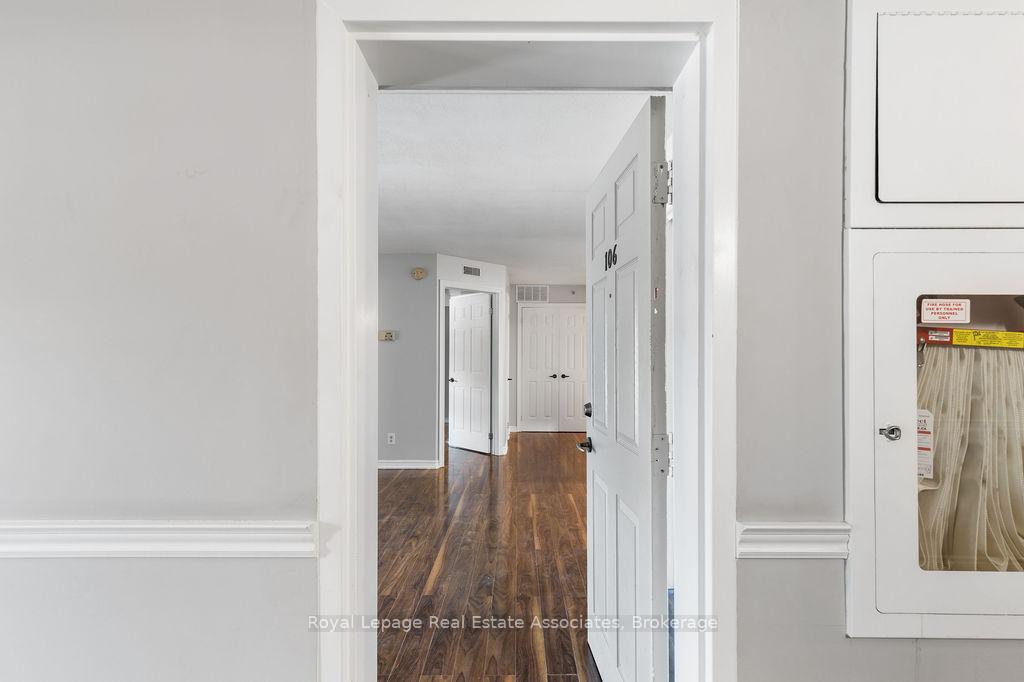 Welcome to 106-4013 Kilmer Avenue a bright and charming 1-bedroom condo nestled in a quiet, well-maintained Burlington community. This inviting ground-floor unit offers a functional open-concept layout with warm laminate flooring throughout. The kitchen features stylish two-toned cabinetry and opens into a cozy living space with French doors leading to a private open-air balcony perfect for morning coffee or relaxing evenings. A spacious 4-piece bathroom completes the interior. Enjoy the ease of one surface parking spot along with ample visitor parking for your guests. Located close to shopping, parks, trails, transit, and major highways, this is an ideal opportunity for first-time buyers, downsizers, or investors to enjoy easy, low-maintenance living.