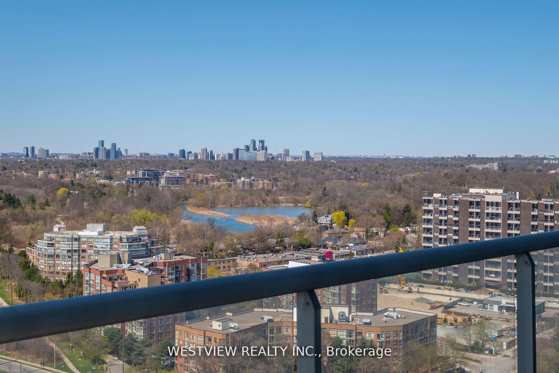 Good morning, Good afternoon & Good evening! That is what you can expect from this sun drenched two bedroom plus den waterfront gem, two floors from the top. Spanning over 1100 sqft of luxurious living space, offering very rare 270 degrees of stunning panoramic views. From the picturesque downtown skyline extending to Humber Bay, Grenadier pond and beyond. Enjoy both the colourful sunrises & sunsets along with watching planes come and go from both airports at a distance. All of which can be managed with your custom automated blinds. This is a Beautifully appointed condo, with post card views from all principal rooms. The modern kitchen features a large breakfast bar that overlooks the spacious living area & bright blue water of the lake. The bright den (potential office space) fit for any executive, features wrap around windows overlooking the Toronto downtown city-skyline as well as the lake to the west. Living in "Windermere By The Lake" you will be within steps to the miles of waterfront walking/ biking paths, High Park, Roncesvalles, Bloor West village, shopping, public transit & many more amenities. Building maint fee is all inclusive of utilities. New Electric vehicle charging station has also been installed for your parking spot, for your convenience, storage locker on 2nd floor. You will look forward to coming home here!
