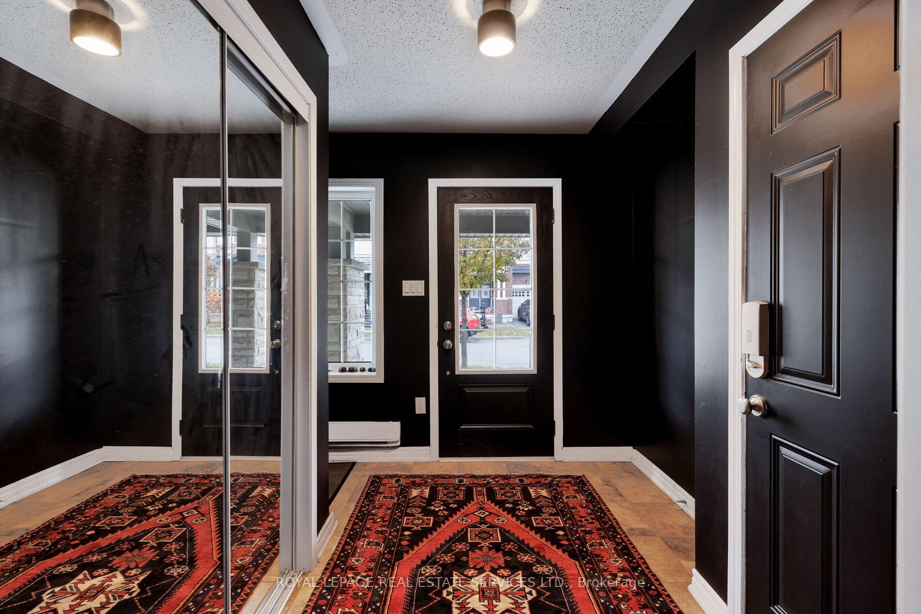 Dramatic luxury awaits in Oakville's highly sought-after Preserve community. This immaculate Mattamy-built 3-bedroom, 2.5-bathroom end-unit townhome with approximately 1,541 sq. ft. delivers contemporary elegance with upscale finishes at every turn. A brilliant blend of materials creates distinctive flair and exceptional comfort-fresh designer paint colours highlight crisp white trims, wood-slat accent walls introduce warmth and texture, and beautiful hardwood floors, designer tile selections, and a solid oak staircase with iron pickets establish a refined foundation. The flexible main floor is bright and inviting, enhanced by pot lights, stylish light fixtures, large windows, and a walkout to the deck. The living room and dining room can be arranged interchangeably to suit your lifestyle. The upgraded kitchen stands out with dark shaker-style cabinetry, granite counters, an elongated mosaic tile backsplash, a functional island with a wraparound breakfast bar, pot lights, and quality stainless steel appliances. This level also includes a chic powder room and a convenient laundry room. Upstairs, three sunlit bedrooms and two full bathrooms provide comfort for the whole family. One bedroom boasts a dramatic cathedral ceiling, while the spacious primary suite offers a private 4-piece ensuite with dark cabinetry and a relaxing soaker tub/shower combination. The ground level features an inviting foyer with a double mirrored closet, stone-look tiles, and inside access to the attached single garage with epoxy flooring-adding both durability and style. Close to the Oakville Hospital, schools, Fortino's, restaurants, the Uptown Core, and highways for commuters. Credit check & references. Prefer No pets. & No smokers.