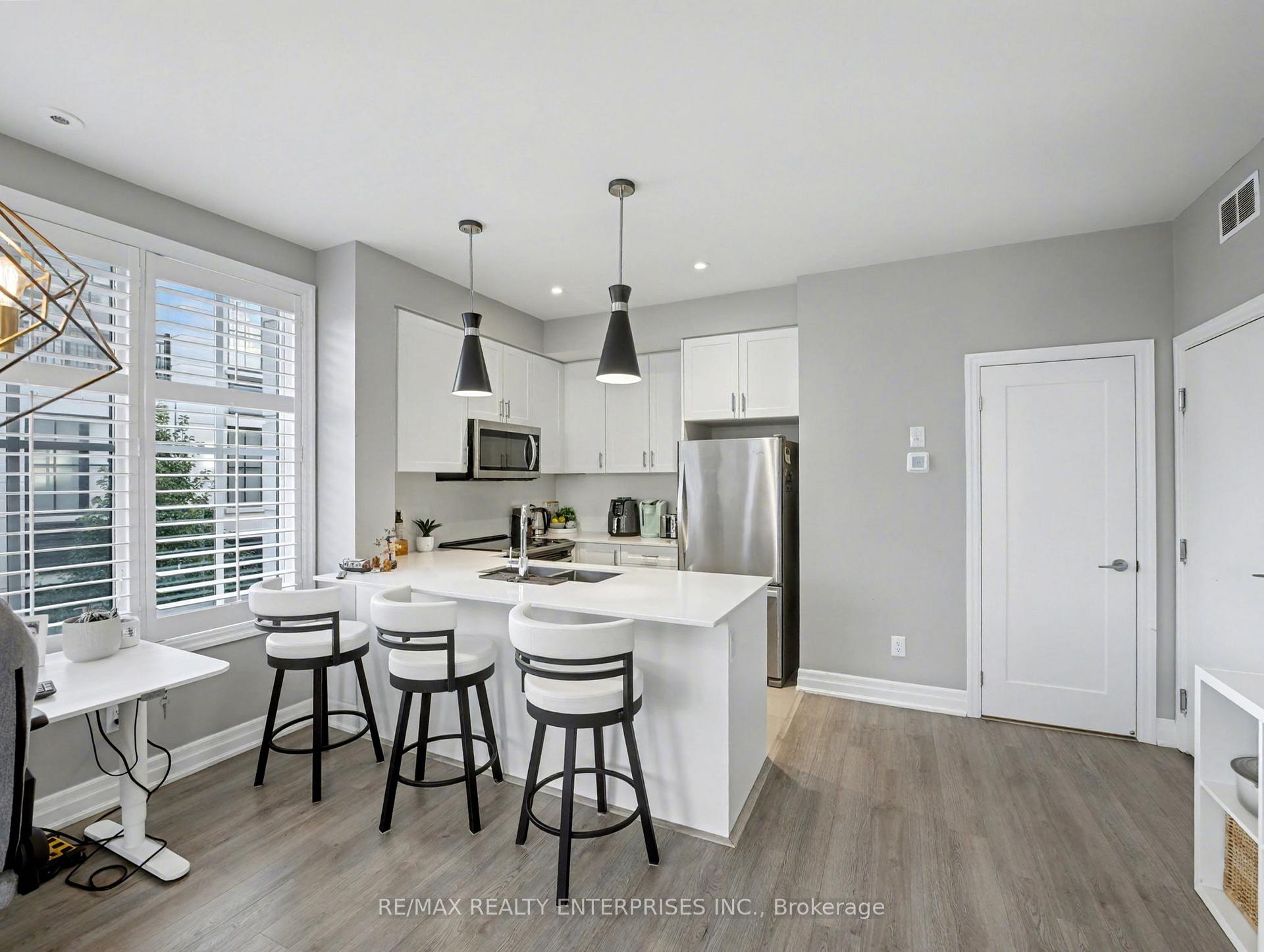 Rare Corner End Unit In Mineola! This 2 Bedroom, 3 Bathroom Townhome Offers Over 1,300 Sq. Ft Of Luxurious Living + An Oversized Rooftop Terrace In A Boutique Community Just 3 Years New. Premium Location At The Back Of The Complex For Maximum Privacy & Quiet. Enjoy A Bright, Open-Concept Floor Plan Ideal For Entertaining, Featuring Engineered Hardwood Throughout. An Eat-In Kitchen With Breakfast Bar & Combined Dining Area. One Of The Few Units With A Powder Room On The Main Level, Along With A Spacious Living Area Flooded With Natural Light.The Upper Level Includes A Primary Suite With Den (Perfect For Work From Home) & A Modern 3-Pc Ensuite With Glass-Enclosed Shower. Additional Third-Level Storage & Utility Room Provides Extra Space For All Your Needs. Top It Off With A Show-stopping Oversized SW-Facing Rooftop Terrace (Approx. 450 Sq.Ft.) Featuring Durable Composite Decking, A Water Hose Hook-Up, Electrical Outlet, Stunning Views & Incredible Sun Exposure. The Perfect Spot For BBQs, Morning Coffee, Or Catching The Sunset. Conveniently Located With Easy Access To Major Transportation Routes, Including GO Transit, And Is Just Minutes From The Waterfront Trail Network & The Vibrant Port Credit Area. Steps To The Lakeshore, Seconds To The QEW, And With Direct Transit Access From Cawthra. Living Room, Primary Bedroom, Second Bedroom Are Virtually Staged*