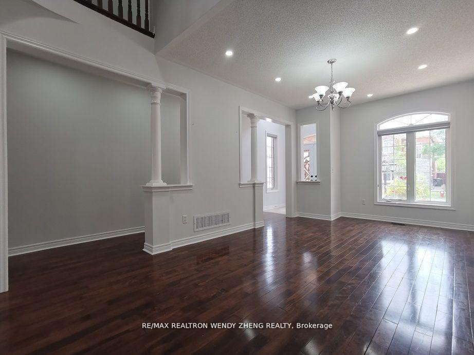 Oversized executive 4-bedroom, 4-bath detached home in Valley Creek (upper levels available for lease, full house option also possible). Featuring hardwood floors throughout, abundant pot lights, a soaring foyer, open-concept living and dining areas with a grand chandelier, and a gourmet kitchen with floor-to-ceiling two-tier cabinets, new stainless steel appliances, a curved granite countertop with matching built-in table, and a breakfast area that walks out to a large concrete patio. The primary bedroom offers a 5-piece ensuite with a corner tub, while another bedroom includes its own ensuite and walk-in closet. Custom blinds in all rooms. Parking for 4 cars without blocking1 in the garage, 2 on one side of the driveway, plus 1 in front of the porch.