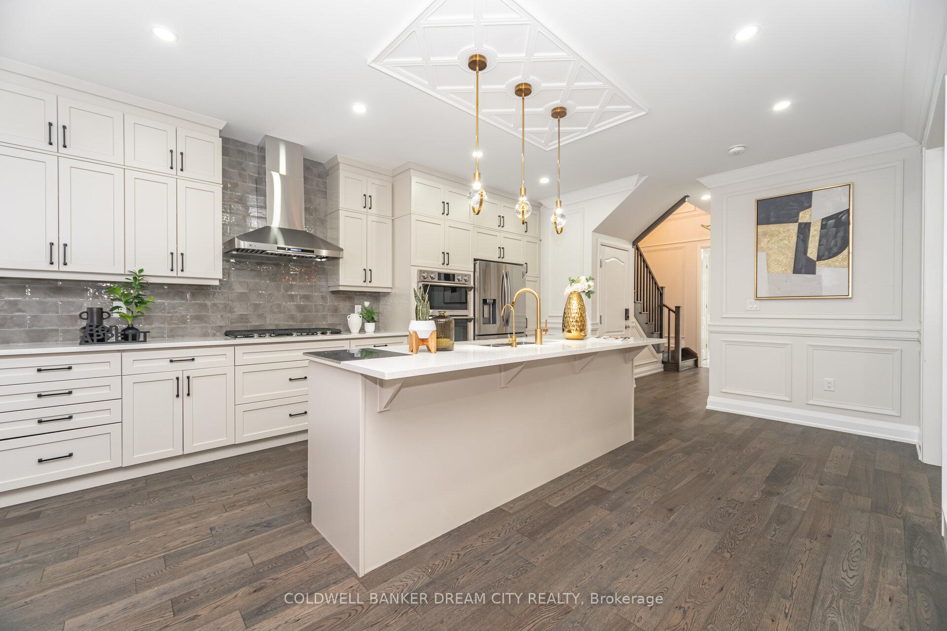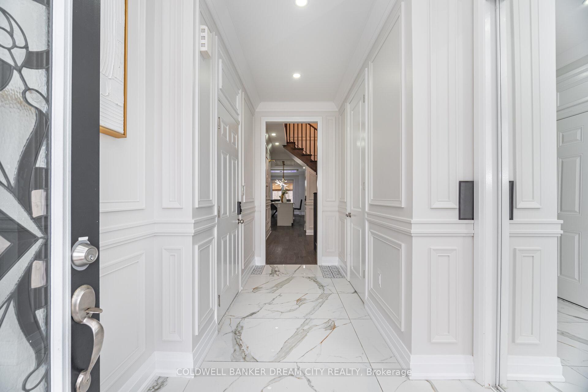 Attention buyers seeking exceptional upscale living! This stunning ravine-lot residence is filled with endless upgrades and refined craftsmanship, featuring 5 spacious bedrooms upstairs, 6 elegant washrooms, full custom finishes throughout, Italian designer touches in one bedroom, and two fully finished basements-one a 2-bedroom suite and the other an in-law studio-perfect for multi-generational living or strong rental potential. The home showcases high-end built-in appliances, built-in speakers, custom closet organizers, remote-controlled window coverings, wainscoting, designer chandeliers, an electric fireplace, extensive pot lights, custom garage storage, two separate laundry areas, a separate entrance to the basement, and a beautifully covered, fully finished backyard with a barbecue setup. Registered Secondary Suite (buyer to verify and perform due diligence), this property offers rare elegance, space, and value-a home that truly must be seen to be appreciated.