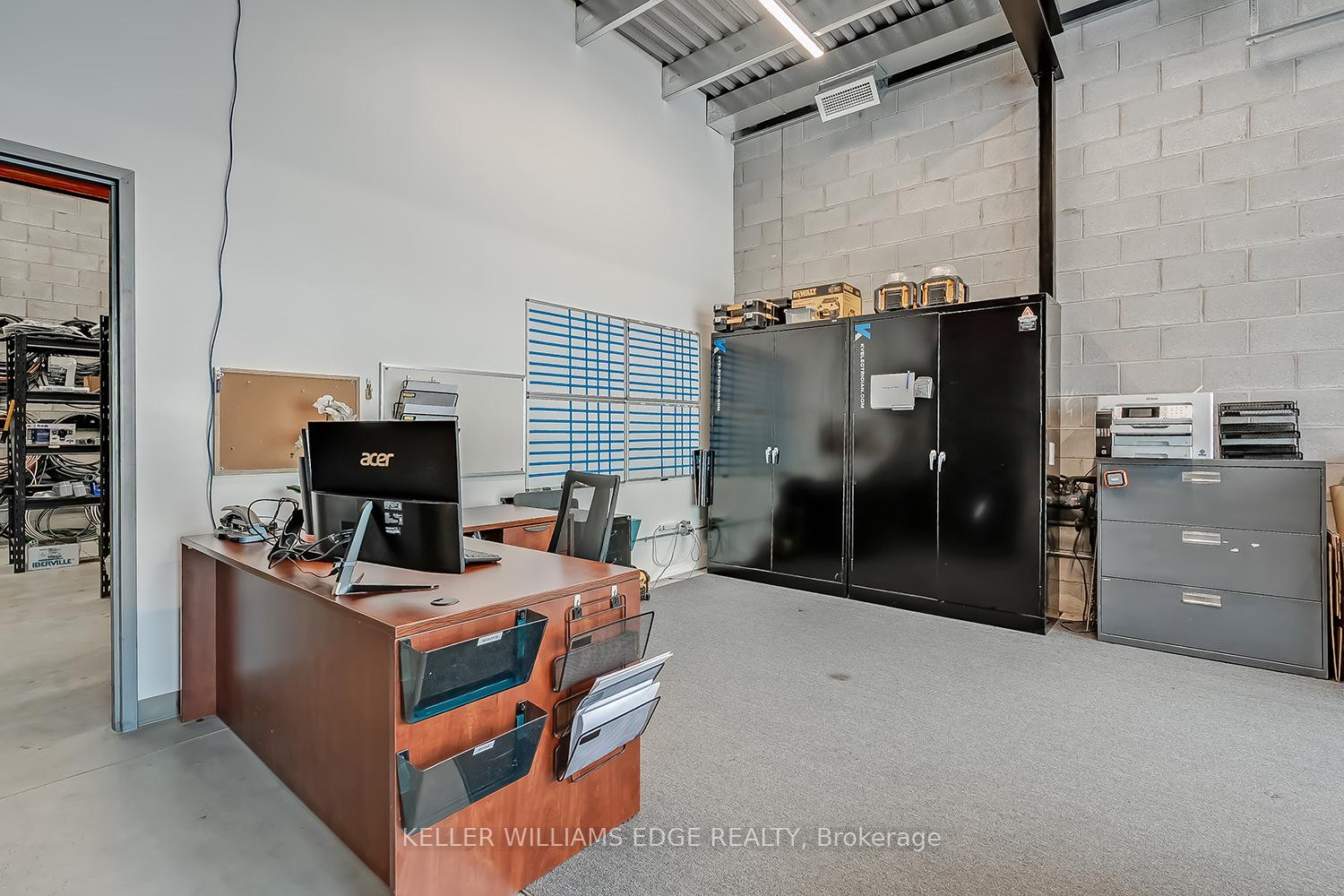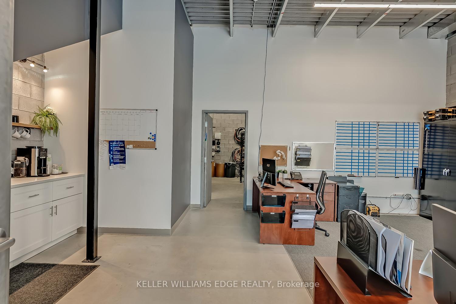 PRIME INDUSTRIAL-COMMERCIAL OPPORTUNITY - This rare and versatile unit offers approximately 2,172 sq. ft. of functional space, including a 1,000 sq. ft. upper mezzanine. Bright and inviting with expansive windows, a glass front entry, and a 10' x 10' drive-in shipping door, this property is designed to meet a wide range of business needs. The main floor features polished concrete floors, a functional kitchenette, spacious washroom, and dedicated storage. The open-concept mezzanine provides flexible options for additional storage, offices, meetings or collaborative work and even includes a wet bar. Additional highlights include 3-phase 60amp/600v electrical service, sprinkler system, and ample on-site parking for staff and visitors. With excellent visibility from King Road and convenient access to Highways 403, 407, QEW, and GO Transit, the location is as strategic as it is practical. Seller is willing to close the adjoining wall or leave it open should you wish to expand by leasing the neighbouring unit.