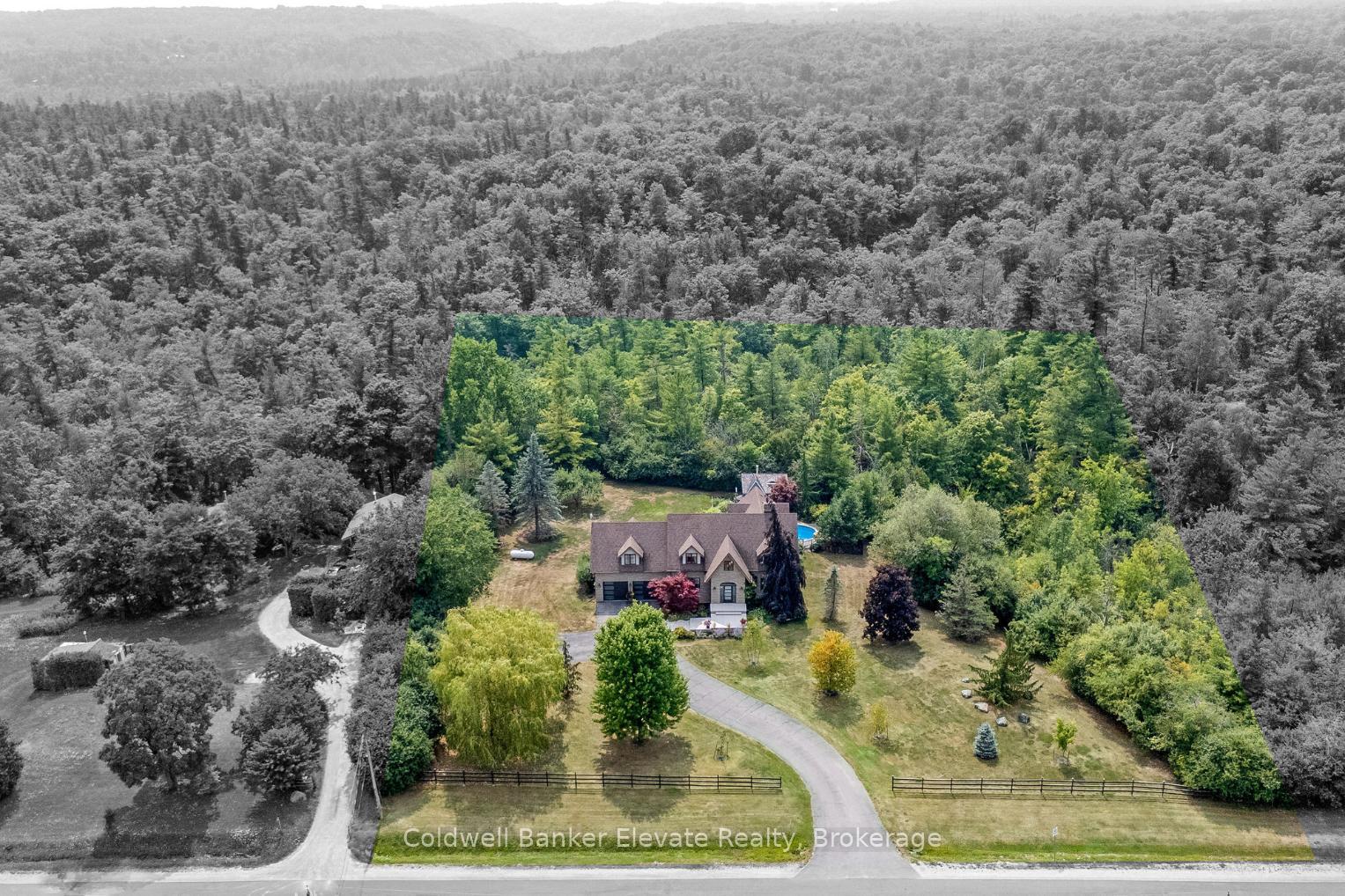 In the storybook hamlet of Terra Cotta, Caledon, just steps from the Cataract Trailway and Terra Cotta Conservation Area, this exceptional property offers elegance and a deep connection to nature. Nearly 2.5 acres back onto protected conservation land with no rear neighbours - only forest, fresh air, and birdsong. The lot blends cleared lawn and woodland, with sunny spaces for entertaining and shaded spots for quiet reflection. Your fenced backyard oasis is anchored by a heated saltwater pool with a waterfall, an expansive patio for barbecues and lounging, and the ultimate privacy of your own forest. Inside, vaulted ceilings and large windows flood the main living areas with natural light. The formal dining room sits off the foyer behind French doors, while the grand two-storey living room features a two-way wood-burning fireplace shared with the breakfast room. The chefs kitchen boasts top-of-the-line Miele appliances, including an oversized fridge, built-in oven, sleek cooktop, and flush-mount range hood. A spacious sunken family room off the breakfast and kitchen opens to the backyard. The main floor also offers a laundry room with a walkout and a spa-inspired 3-pc bath with heated floors and a glass shower, perfect after a swim. Upstairs, the open loft hallway provides space for an office, hangout space, or reading nook. Four bedrooms include a sprawling primary suite with his-and-hers walk-in closets. The finished basement offers a huge rec/games room plus a bonus room - ideal as a gym, extra bedroom, or office. An insulated double-car garage with epoxy flooring completes this property. From sunrise coffee on the patio to starlit swims beneath the trees, this Terra Cotta retreat is more than a home - its a lifestyle.