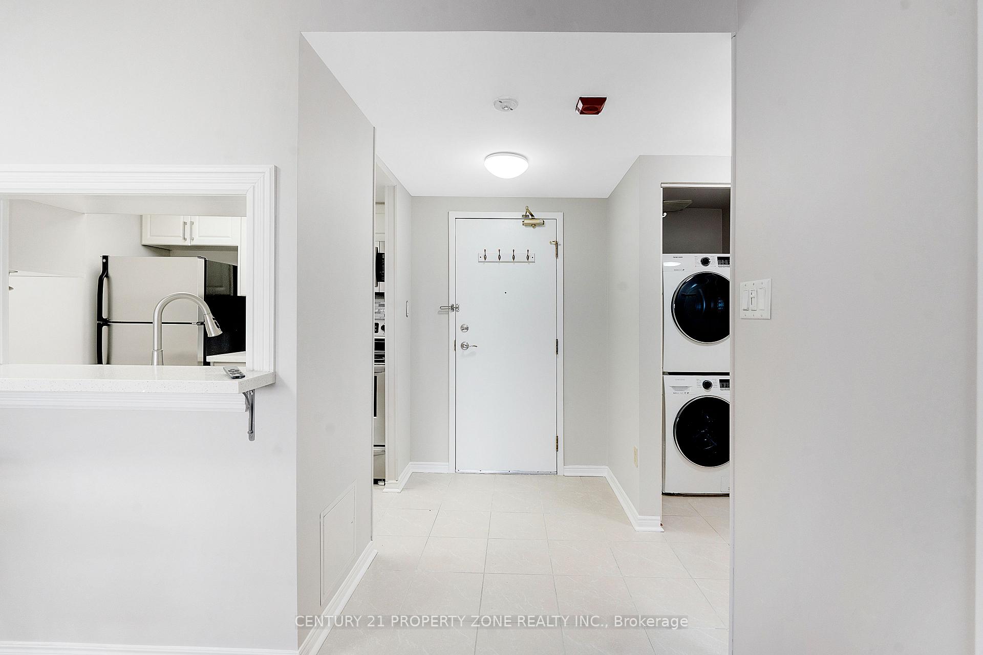 Step into chic boutique-style living in this beautifully renovated and freshly painted 1+1 corner suite. The sought-after layout offers huge windows, excellent natural light, and an open, airy feel. The tranquil garden-view den is perfect as a bright home office or can easily function as a second bedroom. The suite features a modern quartz kitchen with brand-new stainless steel appliances, an updated bathroom, and a new washer and dryer. Enjoy the convenience of in-suite laundry, underground parking, and an exclusive-use locker. The well-maintained building offers outstanding amenities, including an indoor pool, hot tub, fitness and exercise rooms, library, games and meeting rooms, BBQ area, garden with gazebo, and three guest suites. All-inclusive maintenance fees add to the ease of living.Ideally located with a bus stop right at the entrance, steps to Steeles Avenue shopping, Sheridan College, and transit, plus quick access to Highways 410 and 407.