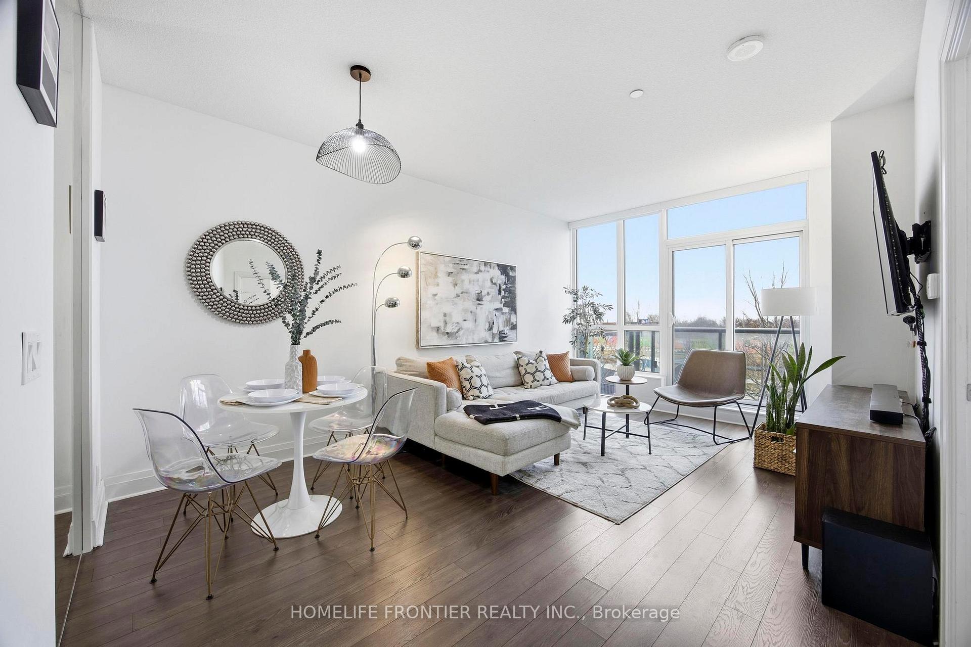 *** enhanced privacy ** Welcome to a bright and spacious 2-bedroom condo offering a truly one-of-a-kind layout in the heart of Toronto. Positioned above the lobby with no residential units above, this rare floorplan is the only one of its kind in the building and benefits from dedicated water drainage, enhanced privacy, and minimal shared walls - an exceptional advantage rarely found in condo living. Flooded with natural light, the suite features a desirable south-facing exposure, 9-foot ceilings, and floor-to-ceiling windows overlooking a peaceful park, creating an airy and inviting atmosphere throughout. The open-concept living and dining space is exceptionally well-suited for entertaining, offering a sense of separation from neighbouring units that allows for gatherings, music, and hosting with far fewer noise concerns than typical condo layouts. The modern kitchen is equipped with full-sized appliances and ample counter space, ideal for everyday living and hosting alike. Both bedrooms are generously sized, providing flexibility for a home office, guest room, or family use. While the unit includes one full bathroom, a convenient guest bathroom is located just outside the unit, a rare and practical feature when entertaining. Enjoy unmatched convenience and accessibility with direct access to a nearby staircase for quick outdoor entry, and less than a one-minute walk to the brand-new Longo's plaza. Premium building amenities include 24-hour concierge, fitness centre, pool, hot tub, sauna, meeting rooms, and more. The unit also includes dedicated parking and a private locker. Ideal for end-users who value space, privacy, and lifestyle flexibility - or investors seeking a truly differentiated offering - this residence delivers a rare combination of location, layout, and livability in Toronto's vibrant West end core. A standout opportunity for those who want more freedom than the average condo allows.