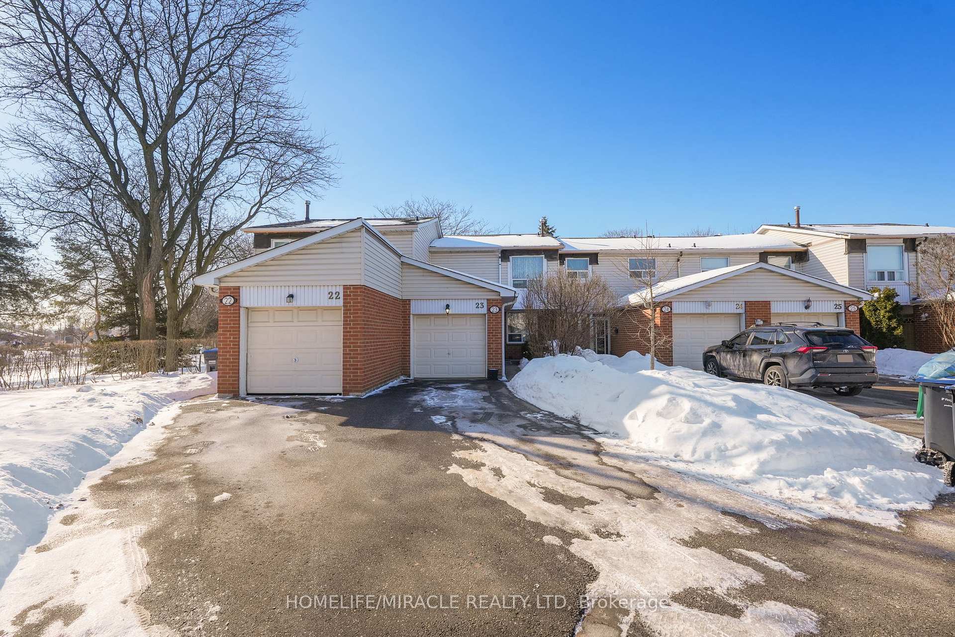 Renovated condo townhouse located on a quiet cul-de-sac in Forestview Village, a prime Mississauga location. This home offers 3 spacious bedrooms and a separate dining room overlooking the living room with a wood-burning fireplace. Sliding doors lead to a private fenced backyard, ideal for relaxing or entertaining. The kitchen was renovated in 2018 with updated kitchen cabinets, countertops, backsplash, and exhaust hood, and features a pantry and breakfast area. Laminate flooring throughout the main and second levels enhances the modern appeal of the home. Energy-efficient upgraded windows throughout and an upgraded patio door (2019). The finished basement, complete with pot lights, provides additional versatile living space. Conveniently located minutes to Highways 403 & 401, Square One, top-rated schools, shopping areas, transit, parks, restaurants, and everyday amenities, this home offers both lifestyle and convenience. The well-maintained, family-friendly complex features ample visitor parking and a true sense of community. Meticulously kept, thoughtfully upgraded, and full of warmth, this stunning home is perfect for those seeking comfort, functionality, and timeless charm.