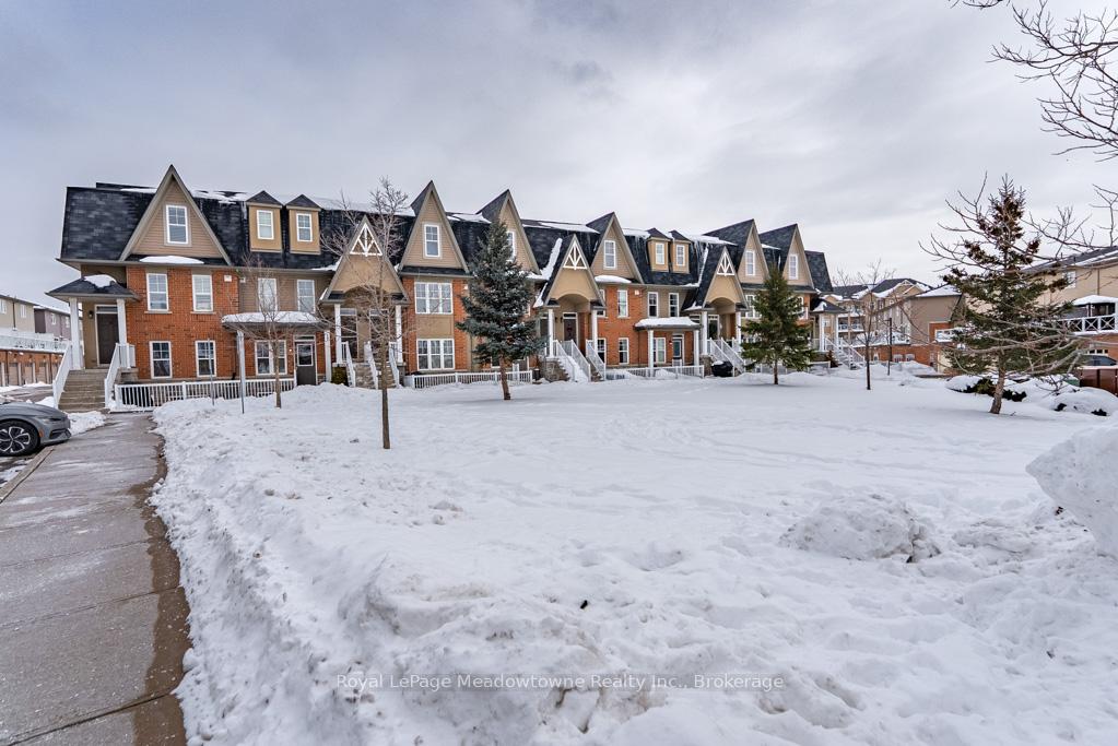 Step into this bright and well cared for lower level end unit stacked townhouse where you'll immediately notice how easy life feels here. With approx 1441 sq ft of thoughtfully designed living space, this home offers the perfect blend of comfort, function, and low-maintenance living in a convenient Milton location. The open-concept main level is filled with natural light, thanks to large windows that make the space feel airy and welcoming. Whether you're unwinding by the electric fireplace or cooking for friends, the upgraded kitchen is a true highlight, featuring new quartz countertops, a stylish backsplash, plenty of cabinetry, and a pantry to keep everything neatly tucked away. One of the standout features is the main floor primary bedroom complete with a large walk-in closet and a private upgraded 3pc ensuite, offering a quiet retreat at the end of the day. Heading down the stairs, the finished lower level continues to impress with two additional bedrooms, a full bathroom, laundry room and a versatile rec room. We can't forget the amount of storage built into this unit, whether it's in the closets, garage or secret space behind the fireplace, there's room for all your belongings. Outside, enjoy your own front patio spanning the width of the unit and conveniently facing green space. **PERKS** This unit comes with TWO parking spaces. Not only is there a garage with interior access to the home, there is also an extra surface level parking spot! This is a fantastic opportunity for buyers looking for a well-maintained, move-in-ready home with low condo fees and convenient access to parks, schools and major routes.