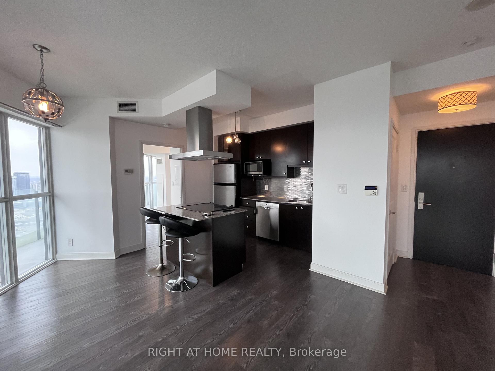 Location, Location, Location! Experience luxury living at the iconic Marilyn Monroe Condos in the heart of Mississauga. This bright and spacious 2-bedroom, 2-bathroom suite features an open-concept layout with granite countertops, stainless steel appliances, floor-to-ceiling windows, and a wraparound balcony showcasing unobstructed panoramic views of the city. The unit also boasts laminate flooring throughout, a fresh new paint job, and custom feature wall with Fireplace and TV. The open and airy layout makes entertaining a breeze while enjoying balcony access from the living room and both bedrooms. This building is located in the heart of it all steps to the upcoming HURONTARIO LRT, Square One Shopping Centre, restaurants, and much much more.
