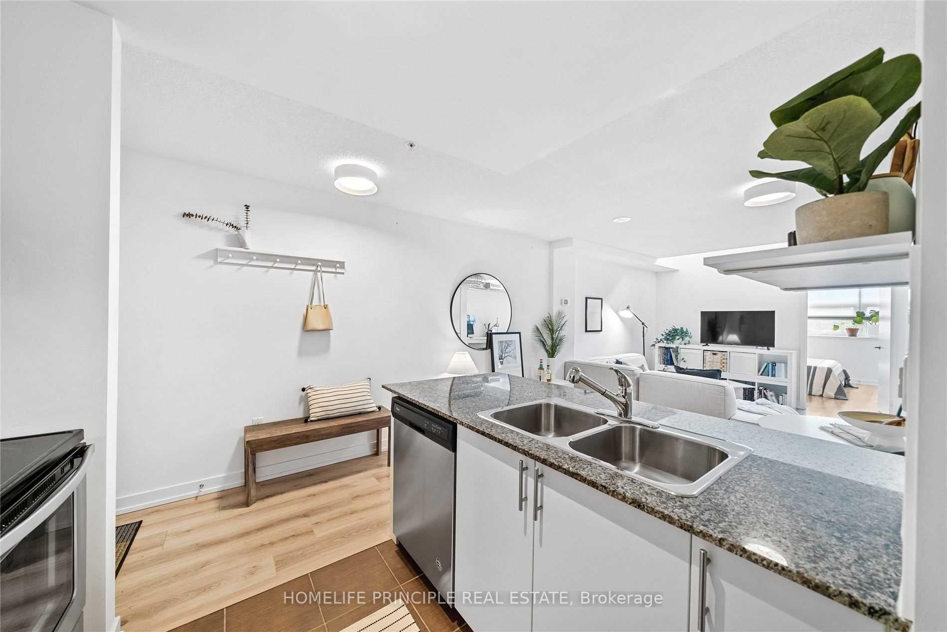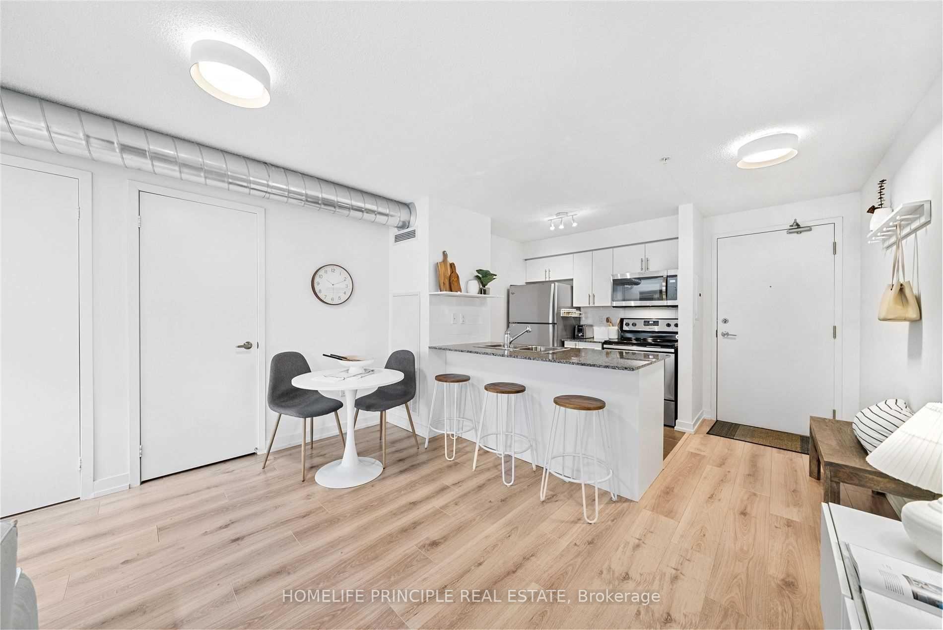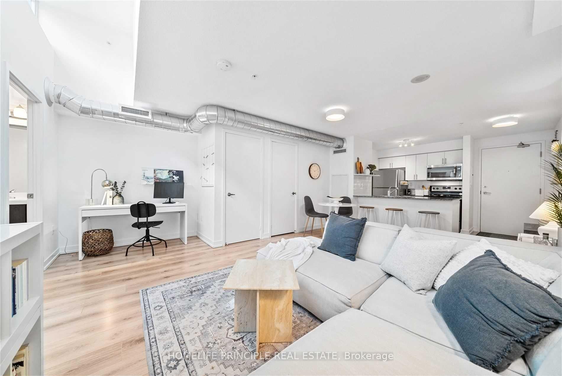 Sun-filled south-facing 1 Bedroom + Study, 1 Bath (4 pc) in the heart of the trendy Junction Triangle. Rarely offered, this condo comes with 1 underground Parking space! This beautiful unit Features large windows and a massive skylight for all-day natural light, plus exposed ductwork for added loft-style charm. Unique square layout with no upstairs or downstairs neighbors. Full sized Open-concept kitchen with breakfast bar island, full-size stainless steel appliances and granite countertops. Modern LVP flooring throughout. Includes ensuite laundry, walk-in closet, and spacious ensuite storage closet. Steps to the large outdoor roof garden terrace and building amenities which include spacious gym, yoga room, party room and theatre room! 24 hour concierge security and an Abundance of visitor parking. Bonus: Grocery store and pharmacy conveniently located within the building - no need to travel outside. Steps to public transportation within a great neighbourhood of shopping and restaurants. You will not be disappointed.