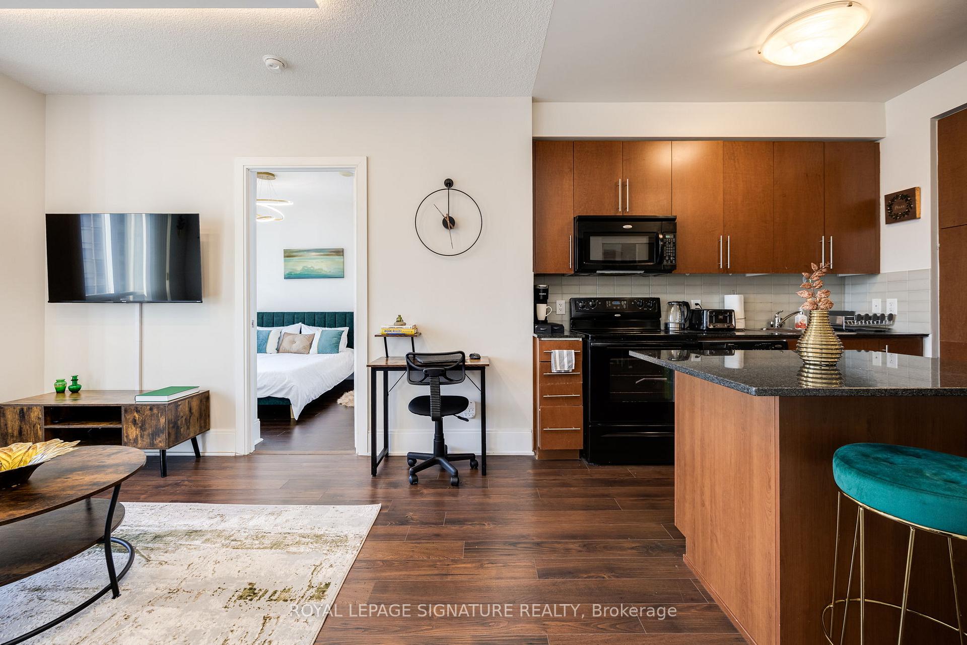 Welcome to Ultra Ovation by Tridel where comfort, convenience, and city living come together in the heart of Mississauga. This sun-filled 2 bedroom, 2 full bath suite offers a thoughtfully designed 750 sq ft interior plus a 45 sq ft balcony, perfect for morning coffee or nightly stargazing. With its south exposure, the unit enjoys abundant natural light and serene views stretching toward the lake.Inside, the open concept layout makes everyday living easy and entertaining effortless. The modern kitchen with granite counters and breakfast bar flows seamlessly into the living/dining area, while the spacious primary bedroom features its own ensuite and generous closet space. A second full bathroom and in-suite laundry add to the practicality. One underground parking spot is included.Life at Ultra Ovation means resort style living: 24-hour concierge, indoor pool, fitness centre, party room, guest suites, and more. Step outside and you're within minutes of Square One Shopping Centre, Celebration Square, Sheridan College, YMCA, Central Library, Living Arts Centre, and a vibrant mix of restaurants and cafés. With transit at your door and quick access to Highways 403, 401, and QEW, commuting is effortless.This is more than a condo. It's a lifestyle in the very centre of Mississauga's most dynamic neighbourhood.