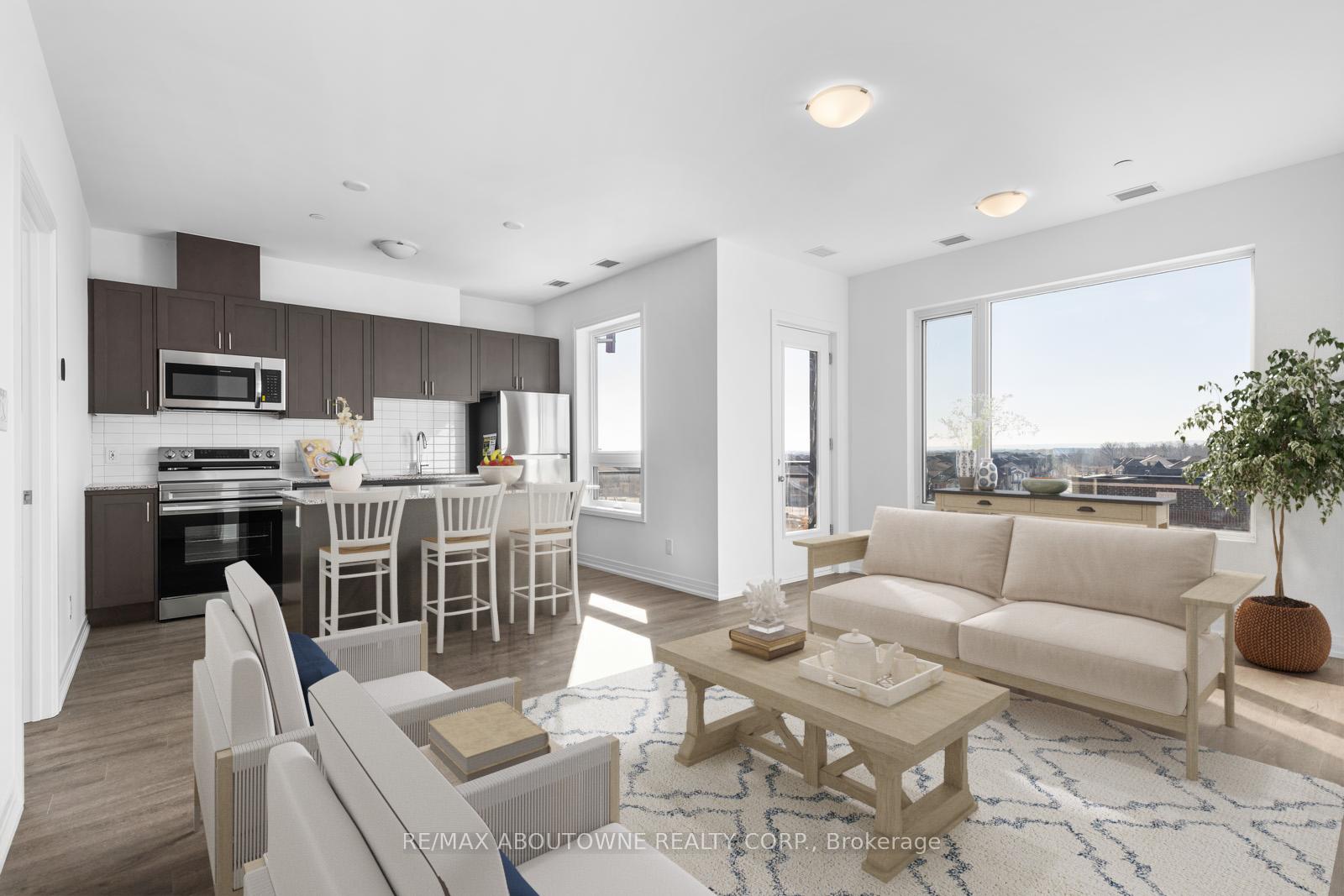 Welcome to this 2-bedroom, 2-bathroom suite in Oakville's highly desirable Preserve neighbourhood. Enjoy peaceful views of a serene pond and surrounding green space, offering a perfect blend of comfort and natural beauty. This bright, open-concept unit features large windows that fill the space with natural light, along with modern finishes including quartz countertops and stainless steel appliances. The primary bedroom offers a spacious layout with a large closet and a private 4-piece ensuite, while the second bedroom is ideal for guests, family, or a home office. Additional highlights include a convenient in-suite laundry area with a stacked washer and dryer, a separate entry, one underground parking space, and a dedicated storage locker. Ideally located close to parks, trails, schools, shopping, and major highways. **Some photos are virtually staged**