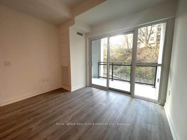 Welcome to this quiet, low-rise building at 25 Neighbourhood Lane, just 3 years old and tucked into a peaceful setting. This corner unit features 2 bedrooms and 2 bathrooms with impressive 10-foot ceilings and floor-to-ceiling windows that fill the space with natural light. The layout is functional and efficient, with a practical split-bedroom design that offers privacy and comfort. Step out onto your 115 sq ft balcony and enjoy serene views of trees and landscaped gardens on the quiet side of the neighbourhood. The primary bedroom includes a walk-in closet and a modern 3-piece ensuite with a glass shower. The sleek kitchen is designed with quartz countertops, stainless steel appliances, and a stylish backsplash. Surrounded by nature, you're just steps from the Humber River and nearby trails, perfect for walking and unwinding outdoors. Conveniently located with a bus stop nearby, and only minutes by car to the Gardiner Expressway and TTC Stop.
