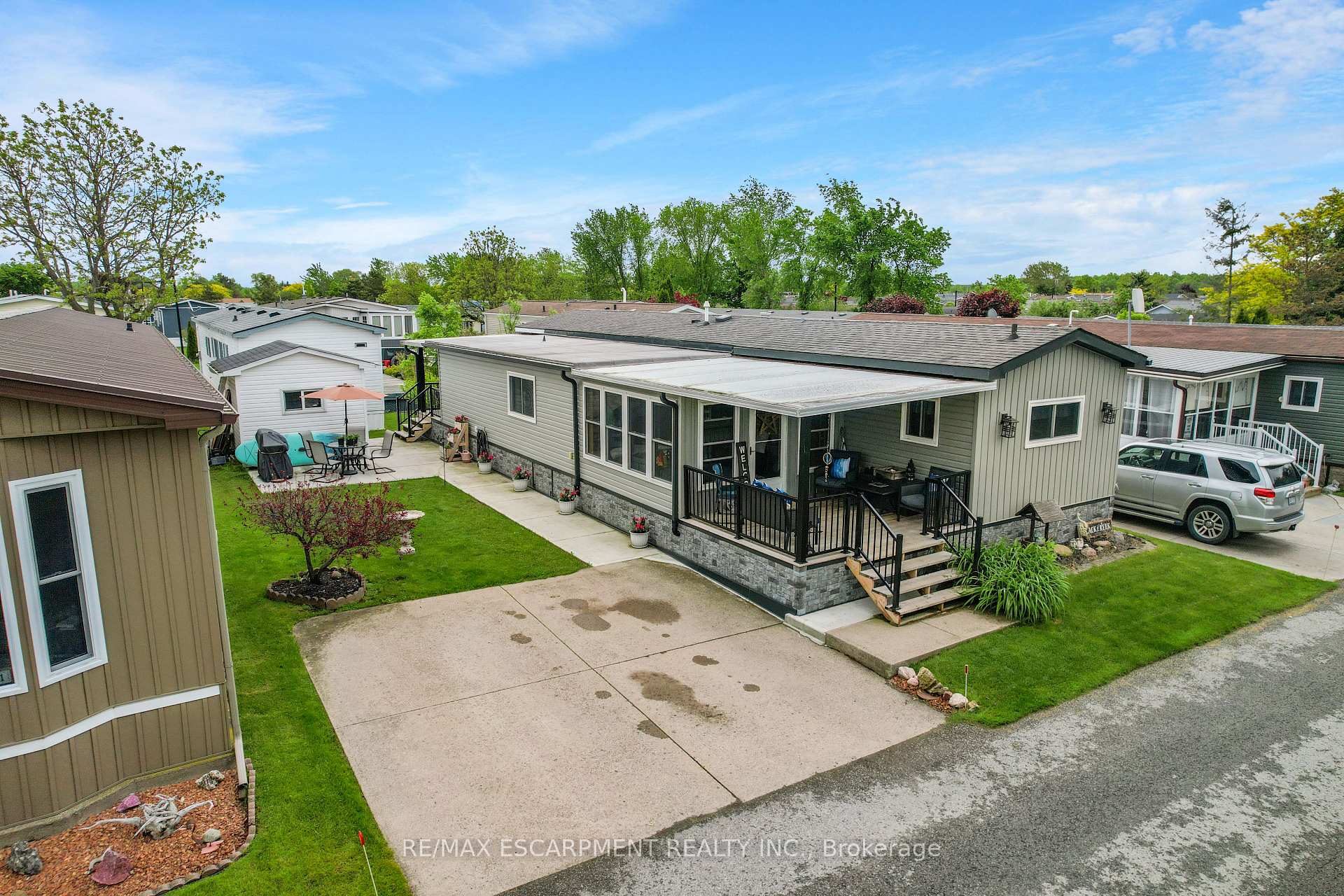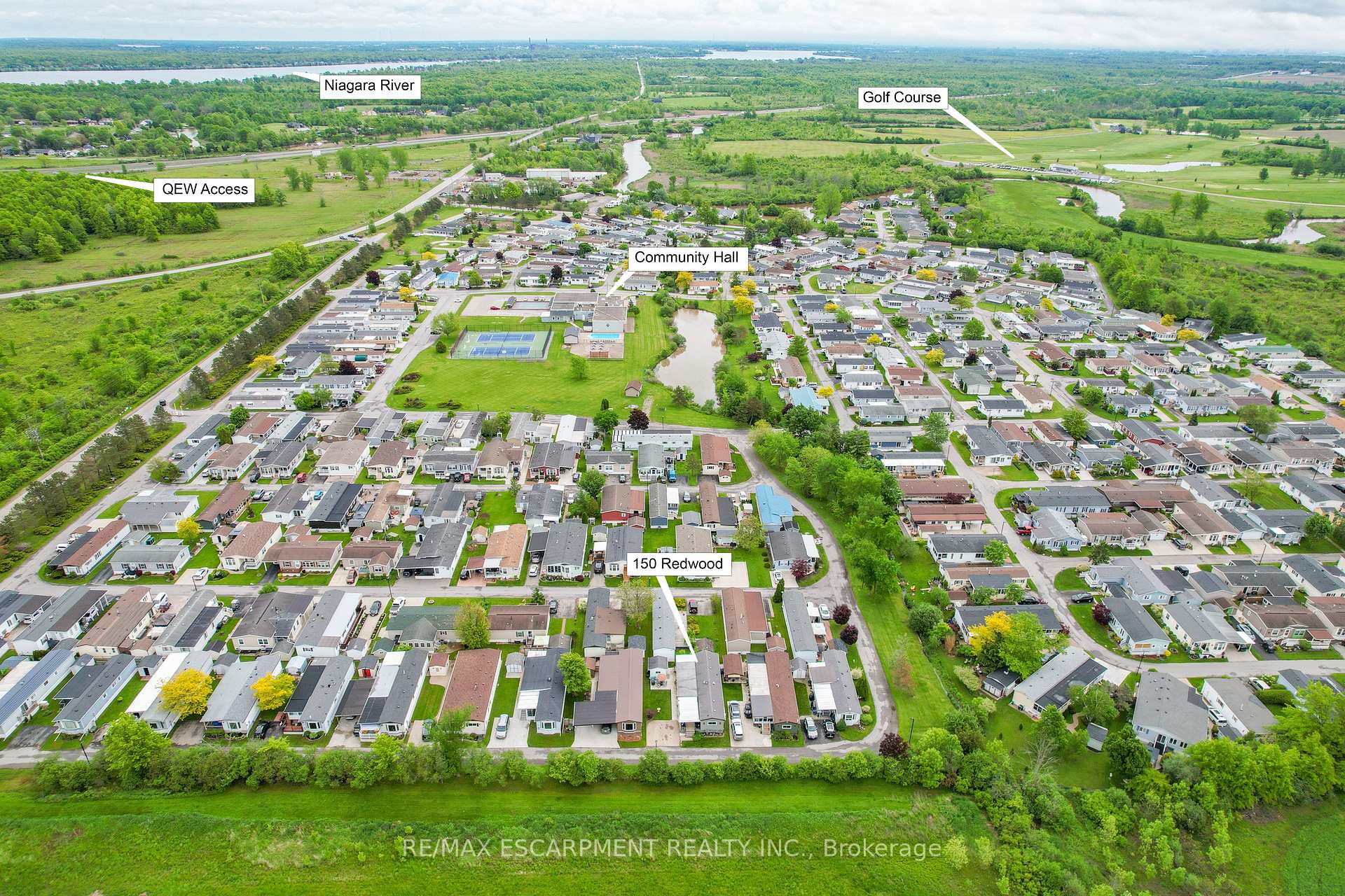 ADULT LIFESTYLE LIVING AWAITS ... 150-3033 Townline Road (150 Redwood Square) is a well-maintained bungalow nestled in the sought-after Black Creek Adult Lifestyle Community in Stevensville. This spacious 2 bedroom, 2 bath home offers over1300 sq ft of functional, one-level living with thoughtful updates and excellent privacy. Enjoy a warm and welcoming layout featuring a large front sunroom w/in-floor heating and patio door off the living room, a generous dining space, and a bright kitchen with centre island, open-style PANTRY, and additional pantry/storage. The sunroom connects to a COVERED FRONT PORCH - perfect for enjoying your morning coffee across with peaceful views of a field. The primary suite boasts double closets and a fully RENO'd 3-pc ensuite (2022/2023). A second bedroom and full 4-pc bath provide space for guests or hobbies. The laundry/mudroom offers additional storage and walkout access to the private rear yard, where you'll find a concrete patio, covered back deck, shed w/hydro, offering peaceful surroundings and added privacy. Recent UPDATES include all windows (except one)(2022/2023), updated appliances (2023), new dryer, siding, fascia, soffits, eves & outdoor lighting; decks, railings, stairs, concrete walkway & patio in front of shed (2022/2023), and five skirting access doors for easy maintenance. Monthly fees of $979.70 cover land lease & estimated taxes, making this a stress-free lifestyle choice. Enjoy an active, social community with access to a clubhouse, indoor/outdoor pools, sauna, shuffleboard, tennis/pickleball courts, fitness & wellness programs, and weekly social events. Quick access to the QEW completes the package. Carefree community living awaits! CLICK ON MULTIMEDIA for virtual tour, drone photos, floor plans & more.