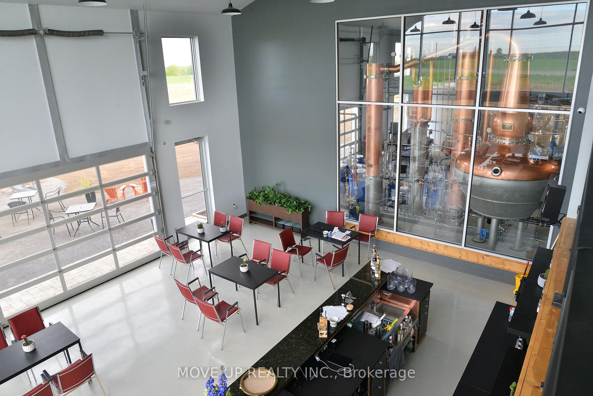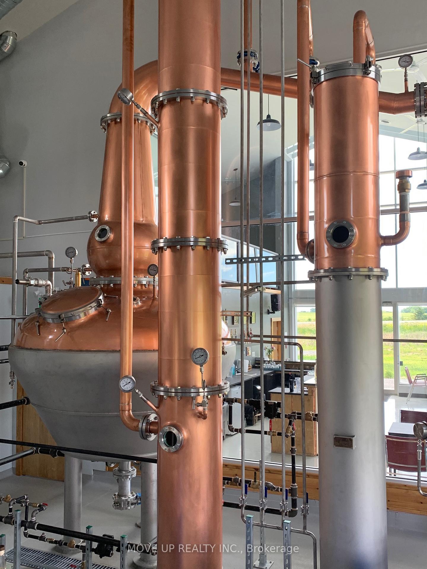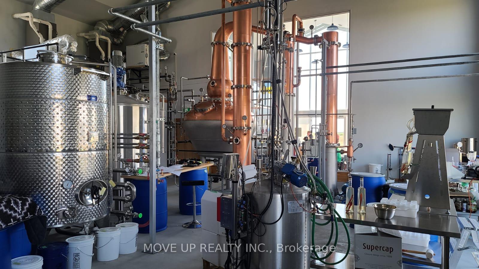 Turn-Key Award-Winning Craft Distillery & 8.5-Acre Industrial Property. A unique opportunity exists to acquire a fully licensed and operational facility, including 8.5 acres of industrially zoned property in the heart of Prince Edward County. The distillery was purpose-built for high-quality, large-scale production, offering efficiency and advanced capabilities compared to typical Ontario craft distillery facilities. It features a 2,000-litre industrial-grade hybrid copper still custom-manufactured by Frilli Srl, a globally recognised manufacturer of premium industrial equipment. This production setup underpins immediate operational capacity and future scalability, allowing a strong competitive position across a wide range of price points, from craft Ultra-Premium to mass-market LCBO-distributed product ranges. The business currently holds a sizable barrel stock of ageing whisky and rum and maintains ongoing production, representing a significant appreciating asset and future revenue stream. The equipment, sourced from Italy, Europe, the USA, and Canada, supports the production of a variety of premium products. The facility's products have earned multiple international awards, including Gold, Silver, and Bronze medals at the prestigious IWSC and London Spirits Competition. This validation of quality and proven capability to craft spirits with a distinct character allows unique marketplace positioning and strong brand differentiation and development. The 3,600 sq. ft. building includes a dedicated production area, a professionally equipped kitchen, a 50-seat indoor restaurant, and mezzanine office space, alongside an adjacent patio featuring a pergola-style shade area and a fireplace. This setup, combined with an outdoor capacity approved for up to 500 visitors, makes the facility highly suitable for large events and hospitality operations. The industrial zoning allows a range of commercial uses and provides strong potential for future expansion.