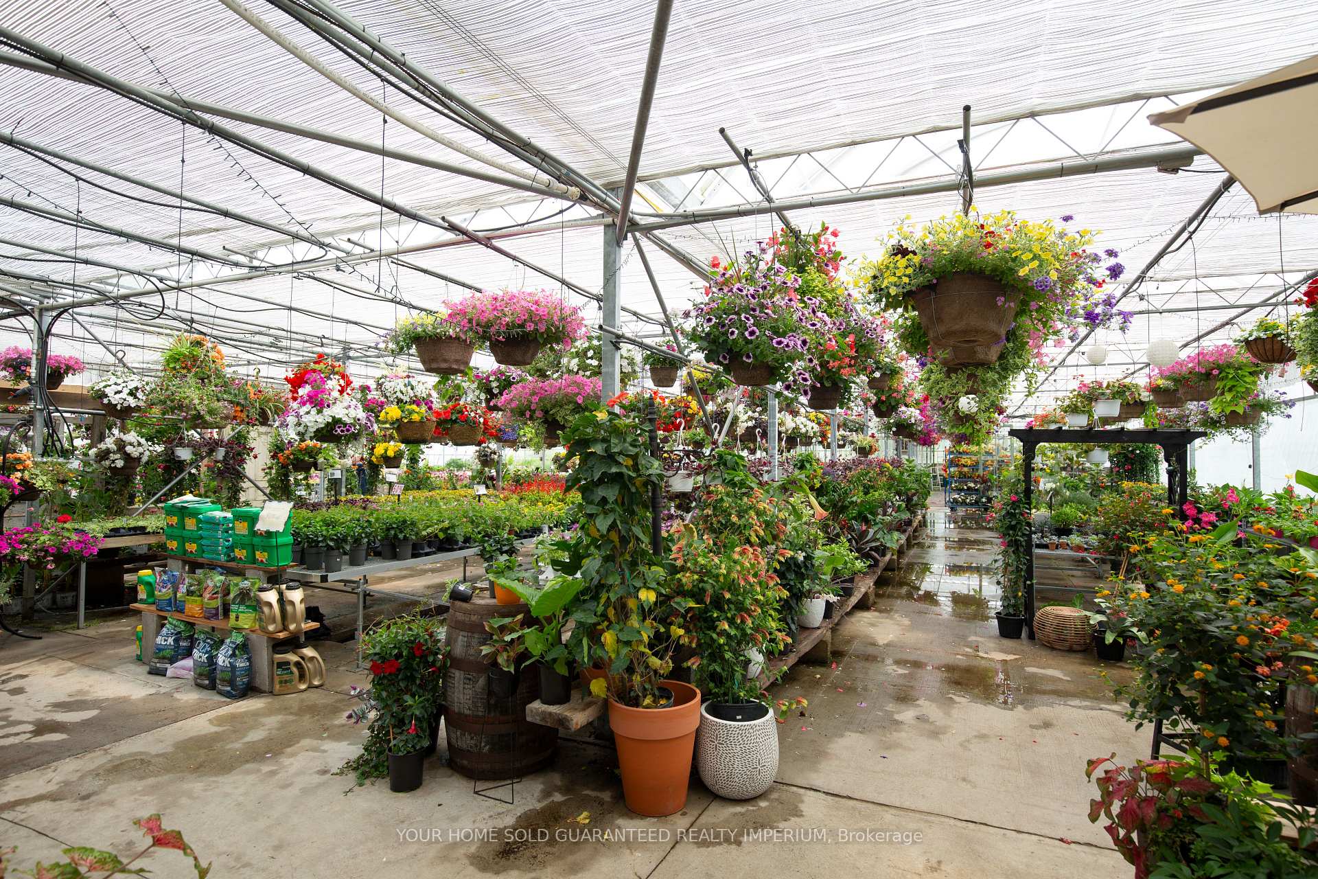 Expansive 22,000 sq. ft. state-of-the-art greenhouse available in a high-traffic location with steady customer flow. It features five water flooding tables, 1,000 water drippers, a soil mixing machine with conveyor belt, 15,000 sq ft of table and display space, and fully automated, temperature-controlled roof systems. With three water cisterns, two wells, a pond with a new water pump, and recently updated plumbing, water heaters, and heated growing tables, the facility offers a virtually unlimited and reliable water supply. Flower shop with newly installed walk-in cooler for cut flowers sales. Additional highlights include a fertilizer injector and PH balancing system, making this an ideal setup for professional growers, horticulturalists, or Agri-entrepreneurs. Lease of greenhouse buildings to be negotiated with the Seller.