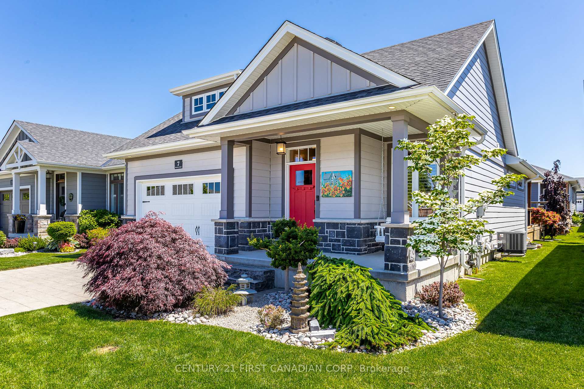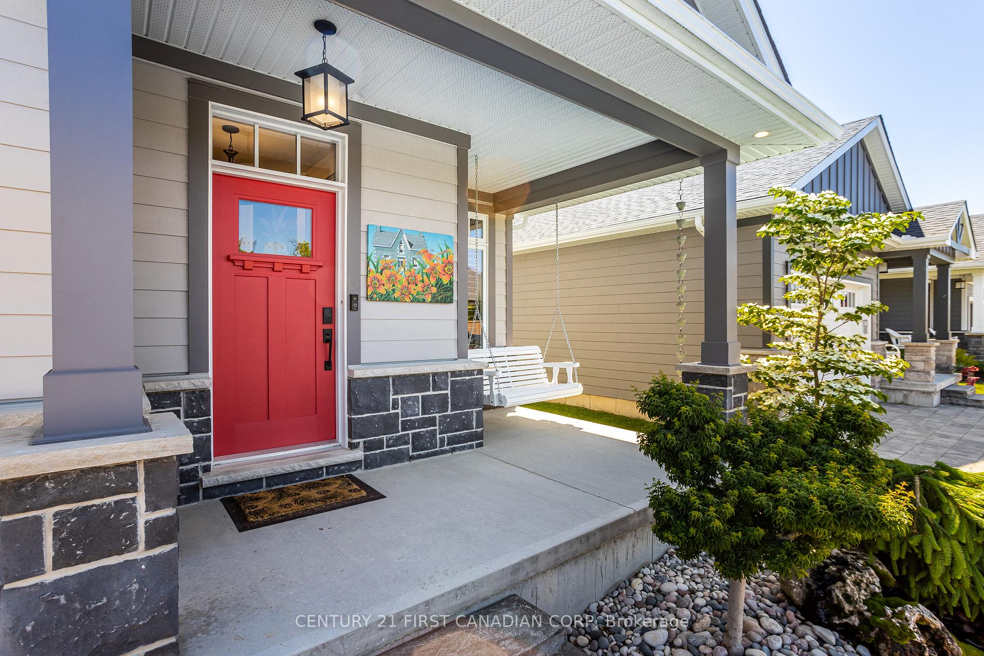 Nestled within the prestigious Harbourside Village of Grand Bend, this immaculately kept and beautifully designed detached condo, built in 2019 by renowned Medway Homes is sure to impress. Offering 2+2 bedrooms, 3 bathrooms, and over 2,500 sqft of exquisitely finished living space, this residence embodies refined living in a quiet, charming community tucked away from the bustle, yet only steps from the world-class amenities and attractions of Grand Bend.Inside, discover hand-scraped engineered hardwood, transom windows that flood the home with natural light, and custom cabinetry topped with sleek quartz counters. Every detail speaks of quality and sophistication, creating an inviting atmosphere for everyday living or entertaining.The outdoor spaces are equally captivating: a welcoming covered front porch with a porch swing, perfect for morning coffee, and an expansive rear deck, partially covered-featuring a HOT SPRINGS hot tub with hydraulic cover (valued at $30k!) surrounded by mature trees for privacy and serenity.The main floor primary suite offers dual closets and a spa-inspired ensuite with heated floors, a glass shower, and custom tile. The fully finished lower level extends the living space with two additional bedrooms, a versatile bonus room ideal for a home office or yoga studio, and a 4pc bath.Additional highlights include professional landscaping for exceptional curb appeal and privacy, step-lighting, California shutters, and thoughtful upgrades throughout. Enjoy stress-free living with a modest monthly fee of $228 covering snow removal and lawn care.This remarkable property blends luxury, comfort, and convenience, an opportunity not to be missed. Schedule your private showing today and experience the best of Harbourside Village living.