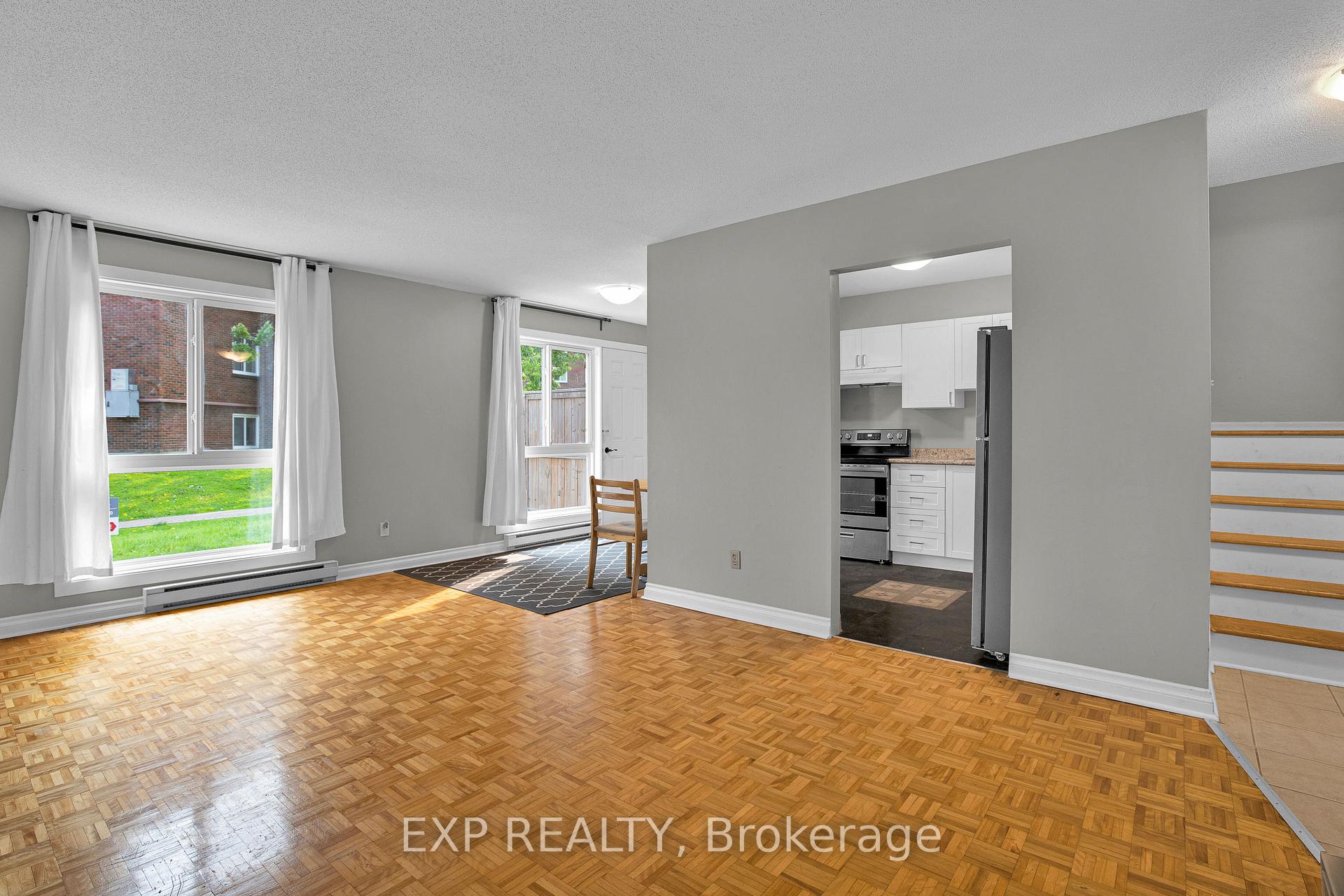 Affordable and SUPER CONVENIENT, this SOUTH-FACING 4BED/2BATH TOWNHOME is perfectly located just a short stroll to the COSTCO, PUBLIC LIBRARY, SPLASH WAVE POOL, and offers EASY HIGHWAY ACCESS. You're also close to CSIS, NRC, MONTFORT HOSPITAL, CMHC, LA CITE, and just minutes from GLOUCESTER SHOPPING CENTRE, WALMART, LRT and more! Inside, you'll find a BRIGHT, OPEN-CONCEPT main floor with NATURAL LIGHT pouring in through large windows. The spacious LIVING and DINING AREA flows into a stylish KITCHEN featuring WHITE CABINETRY, STAINLESS STEEL APPLIANCES, and PLENTY OF COUNTER SPACE! Perfect for meal prep and entertaining. There's also a versatile MAIN FLOOR ROOM that can be used as a GYM, HOME OFFICE, or EXTRA BEDROOM for a growing family. Upstairs offers THREE GENEROUSLY SIZED BEDROOMS and a FULL BATHROOM with DOUBLE VANITY that's so convenient for busy mornings! Outside, enjoy your own PRIVATE BACKYARD and PATIO, surrounded by MATURE TREES, and take advantage of the FANTASTIC IN-GROUND POOL and PLAYGROUND, ideal for SUMMER entertainment and FAMILY FUN!