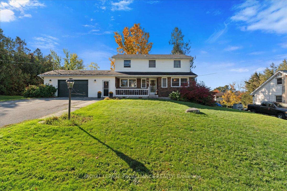 Prime bright cheery 2 storey family home with lovely front veranda that enters to centre hall plan, plus 2nd front entrance steps into oversize mudroom with mega closets and door to garage or to back yard. Leading off kitchen, is the long large combo dining and living area with closed fireplace that would fit gas insert nicely. Main floor 2 pc bath plus family room/den. Upstairs offer 4 bedrooms and 4pc bath. Lower level has large family room, laundry and utility room plus cold storage. Nice private back yard and fully fenced with 2 gates, large stamped concrete patio for enjoying some family time. 2 car garage, gas furnace. Great quiet location close to schools and all amenities. Needs a few updates