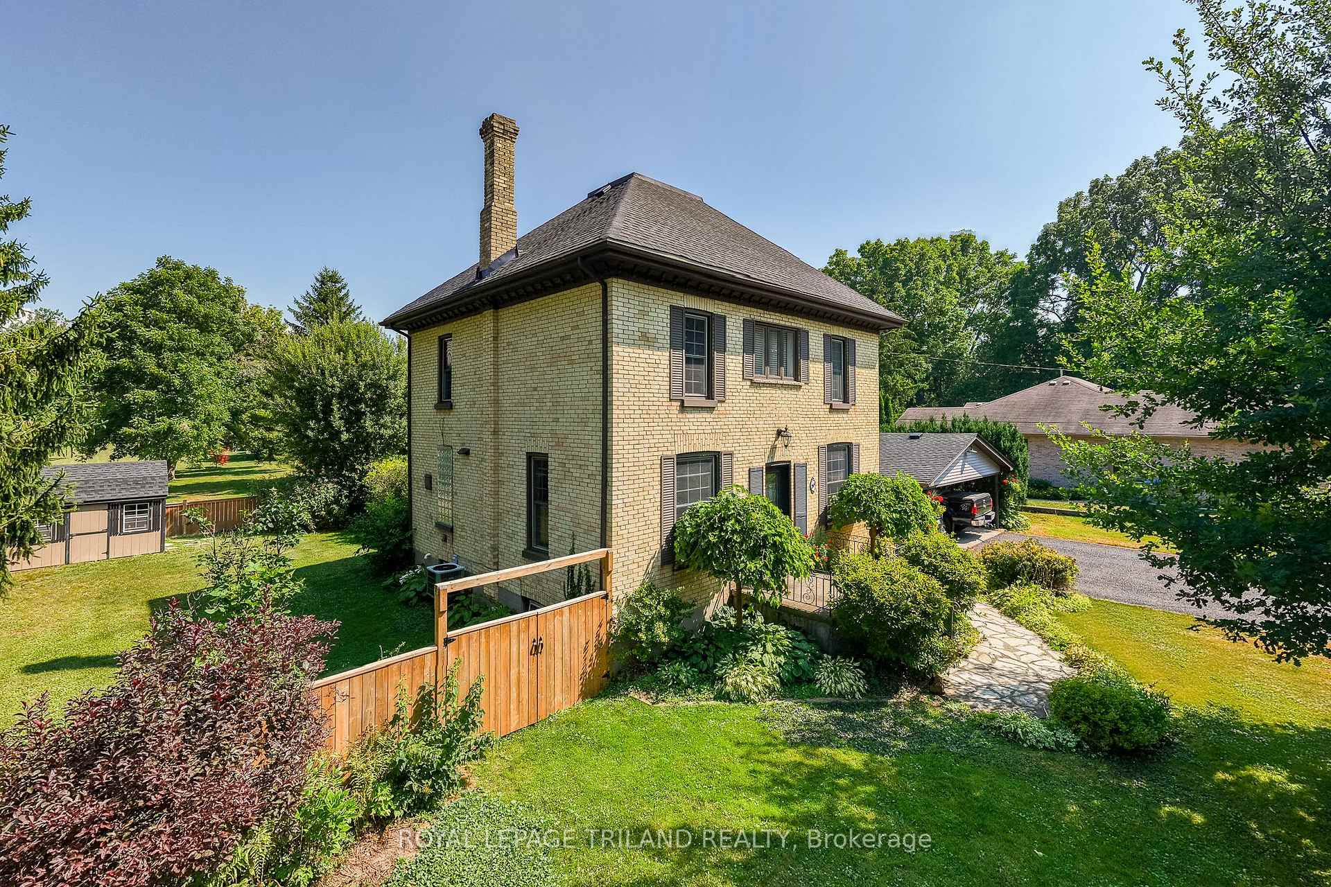 WELCOME TO YOUR OWN PERSONAL RESORT IN SMALL TOWN ONTARIO! This Parkhill gem has been meticulously maintained for over 40 years by the same owners & is absolutely loaded with premium amenities providing a package that is unbeatable in this price range! Nestled into the most desirable portion of Parkhill's quiet neighborhoods on a DOUBLE WIDTH lot with a fully fenced yard that includes a massive lawn space (ideal for a good sized ice rink, active kids, grandkids, or dogs, etc.) bordered by mature trees & also the spa-like pool setting with pergola and hot tub deck surrounded by flagstone. It's like 2 backyards in one! This premium location & with its oversized lot is surrounded by other large parcels fostering a rural feel but still being just steps away from all of Parkhill's convenient amenities. In addition to the exceptional landscaping & breathtaking setting, this stately & stunning century home doesn't miss a beat, from the 2022 kitchen & main level laundry/bathroom to the four corner bedrooms with the full bath upstairs. The list of upgrades is extensive: roof was brand new summer 2025, new pool liner, hot tub, & fence in 2023, & the 10-ft ceilings on the main level are in immaculate condition surrounded by updated thermal pane windows & hardwood flooring & it's all forced air gas heated & central air conditioned. This iconic property also offers a lot of storage space, with a full basement accessible by a separate entrance, a nice large storage shed, & a fair amount of space in the enclosed storage room at the back of the carport, which provides two covered sparking spaces in addition to the ample parking in the driveway. This carport could be easily walled-in to create a 2 car garage. Whether it's for entertaining a growing family or retiring in a quiet small town close to one of Canada's best beaches in Grand Bend just a few minutes up the road, if you can afford this level of luxury, you cannot afford to pass this up. This is a must see!