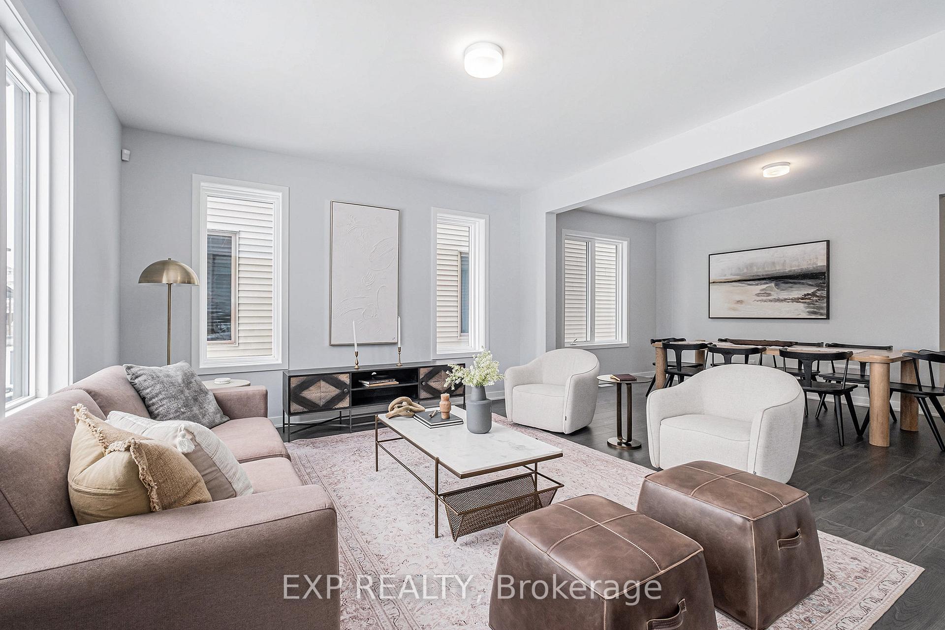 Welcome to the Harmony Model by Mattamy Homes, a 36' detached 2,744 sqft home in the desirable Oxford Village community of Kemptville. This 4 bedroom home sits on a PREMIUM LOT backing onto greenspace, a pond, and mature trees with the lot premium waived! Even better, it comes with a $30,000 Design Centre Bonus to customize your finishes and truly make it your own. The main floor layout is both functional and inviting. A welcoming foyer leads into a bright flex room that can serve as a formal dining room or play space. A private den is perfect for a home office, while the expansive great room with sightlines to the backyard flows seamlessly into the modern kitchen featuring quartz countertops, a stylish backsplash, and an island ideal for entertaining. Off the garage, a spacious mudroom with its own walk-in closet keeps daily living organized. Upstairs, discover three generous bedrooms plus a loft. The primary suite is a private retreat with a large walk-in closet and spa-inspired ensuite with double sinks and a walk-in shower. The secondary bedrooms offer ample storage, including another walk-in closet, and share a full family bath. A second-floor laundry room adds convenience.The finished basement extends your living space and includes a 3-piece bath rough-in, ideal for a future guest suite, recreation area, or home gym.With hardwood flooring on the main level (including the kitchen and great room), an oak staircase, Energy Star efficiency, a smart thermostat, and included eavestroughs, this home combines thoughtful design with modern upgrades. Oxford Village is a well-planned community surrounded by trails, greenspace, and local amenities offering the perfect balance of comfort and nature.