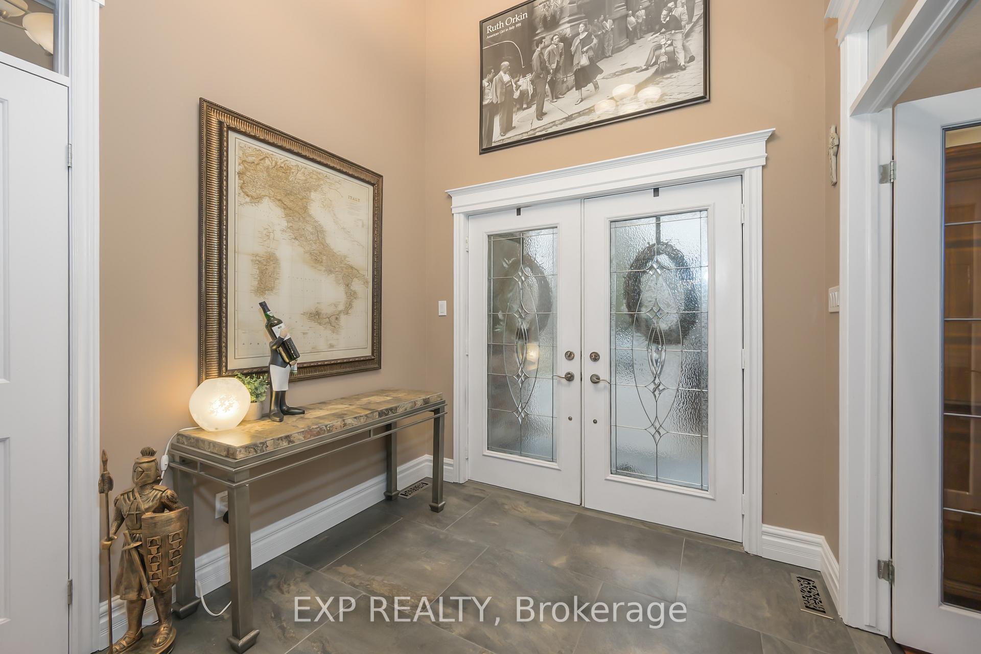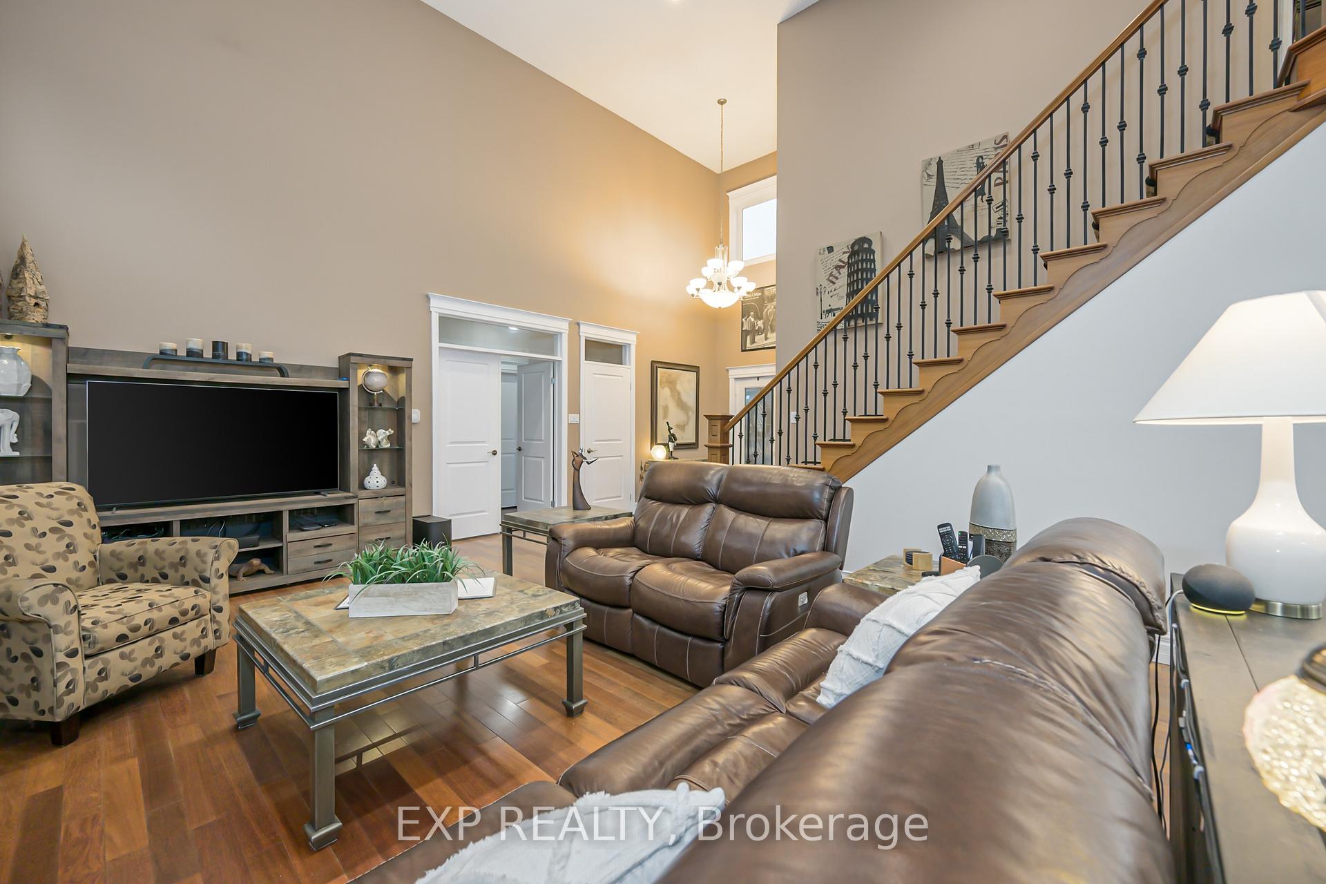 Beautifully updated 2-storey home showcasing elegant design and modern comfort throughout. Step through the open foyer into the bright 2-storey family room with soaring ceilings, transom windows, natural gas fireplace, and electric-powered blinds. The main floor also offers a private office with French doors, 2-piece bath, and laundry room. The stunning renovated kitchen features built-in double ovens and microwave, 6-burner gas cooktop with custom range hood, stainless steel appliances, granite countertops, backsplash, large island, and walk-in pantry. The main floor primary bedroom provides a relaxing retreat with hardwood flooring, ceiling fan, 5-piece ensuite, walk-in closet, and a door leading directly to the covered patio. Upstairs offers three bedrooms with hardwood floors and a 4-piece bath, including a rear bedroom with bay window and another with ceiling fan. The fully finished lower level adds a wet bar with barn board accents and live-edge shelving, 3-piece bath, fruit cellar, storage area, and walk-up access to the garage. The utility room includes an owned tankless water heater, high-efficiency gas furnace, central air, and sump pump. Outside, enjoy a fenced yard with mature trees, storage shed, and covered stamped concrete patio with steel roof and wood tongue-and-groove ceiling. Additional highlights include a large stamped concrete driveway, oversized 2-car garage with dual openers, racking, and basement entry, California blinds, porcelain flooring, and ceiling speakers on the main floor. A perfect blend of luxury, function, and style!