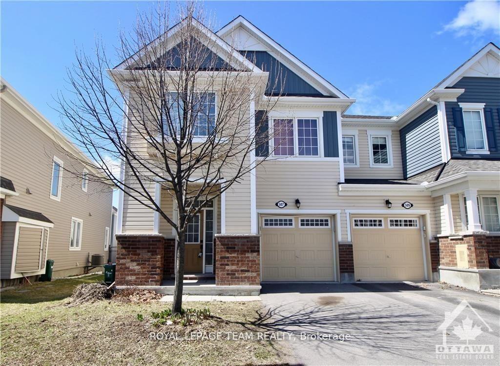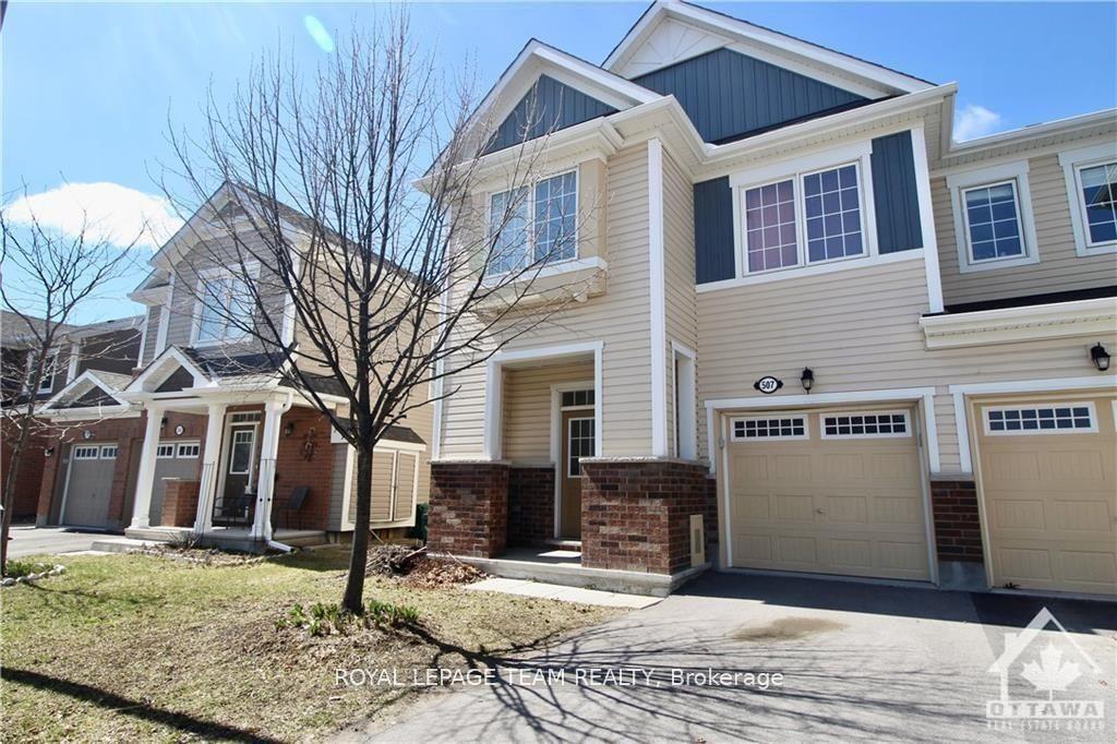 Welcome to this bright and spacious 3-bedroom, 2.5-bath end-unit townhome, offering over 1,800 sq. ft. of living space above grade. Situated in sought-after Monahan Landing, this home is flooded with natural light and perfectly located near schools, parks, shopping, recreation, trails, and OC Transpo. Step into a luxury kitchen featuring quartz countertops, tile backsplash, ceramic flooring, solid wood cabinetry, and stainless steel appliances including a fridge with ice and water, stove, dishwasher, and overhead microwave/hood fan. An inviting eat-in area with ceramic floors and direct access to the fully fenced backyard makes this kitchen as functional as it is stylish. The open-concept main floor offers excellent flow for everyday living and entertaining, with a bright living room featuring a coffered ceiling, a separate dining area, and a convenient powder room. Upstairs you'll find two generously sized secondary bedrooms, a full 4-piece main bathroom, and a spacious primary suite complete with a 3-piece ensuite with walk-in shower, plus both a walk-in closet and an additional standard closet. The unfinished basement provides endless possibilities with an open layout and a rough-in for a future bathroom. This end-unit offers privacy and additional side windows for extra natural light This home delivers comfort, style, and exceptional convenience in one of Kanata's most family-friendly communities.