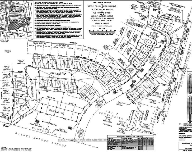 Outstanding opportunity for developers, builders, and investors! An exceptional Infill Opportunity in the most prestigious Mountrock Neighbourhood in Hawkesbury Town. Approximately 10 acres of subdivision with Municipal Services at the Lot Line (to be extended as part of the site servicing). The Draft plan and zoning approved for 107 Residential dwelling, combination of 5 Single detached, 48 Semi-Detached, 30 Free hold Towns, and 2 low-rise apartment blocks with 12 dwelling units in each block. The detail design submission is almost ready for approval. The next steps are land servicing and build houses. Minutes walk to Walmart, hospital, public transports, and many amenities.