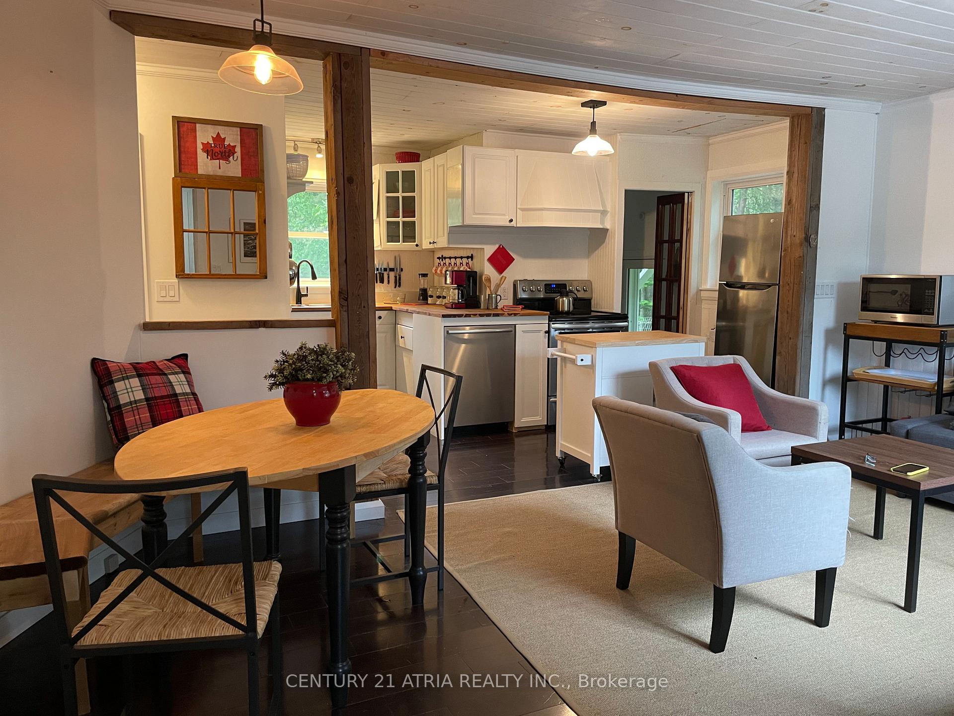 Welcome to 469 Rowanwood Rd in Huntsville,an exceptional opportunity to lease a fully upgraded waterfront-access cottage home in the heart of Muskoka.This bright,modern 2-bedrm residence offers compact,efficient living with direct access to Lancelot Creek,Penfold Lake, and Mary Lake.Ideal for year-round living,weekend escapes,or a peaceful remote-work retreat surrounded by nature.Enter through a spacious,sun-filled mudrm featuring an entire wall of built-in storage for all-season gear,perfectly suited for an active outdoor lifestyle.The open-concept kitchen,dining&living area is filled with natural light from multiple windows,creating a warm & inviting atmosphere.The kitchen is thoughtfully designed with quality cabinetry,ample storage solutions&stylish wall-mounted shelving that maximizes functionality space efficiency.Two well-proportioned bedrms include full wardrobe closets,offering comfortable & practical living.A clean, modern 4-piece bathrm provides everyday convenience after enjoying the outdoors.The home is impeccably maintained and move-in ready, offering a seamless transition for tenants seeking a turnkey Muskoka rental experience.Enjoy true waterfront living with canoe and kayak access from Lancelot Creek into Penfold Lake,plus direct boating access into Mary Lake.The refurbished dock offers sufficient depth for various watercraft,and you are only minutes by boat from Port Sydney's sandy beach, marina,and charming village amenities.This location provides access to approximately 40 miles of interconnected boating, fishing,and exploration. Additional features include space prepared for a future bunkie, ideal for extended family or visiting guests.Surrounded by mature trees and peaceful natural scenery,this rare lease opportunity delivers the Muskoka lifestyle at a fraction of typical waterfront rental prices.Enjoy convenience, comfort, and year-round recreation in one of Ontario's most sought-after cottage destinations.Simply arrive and start living today.