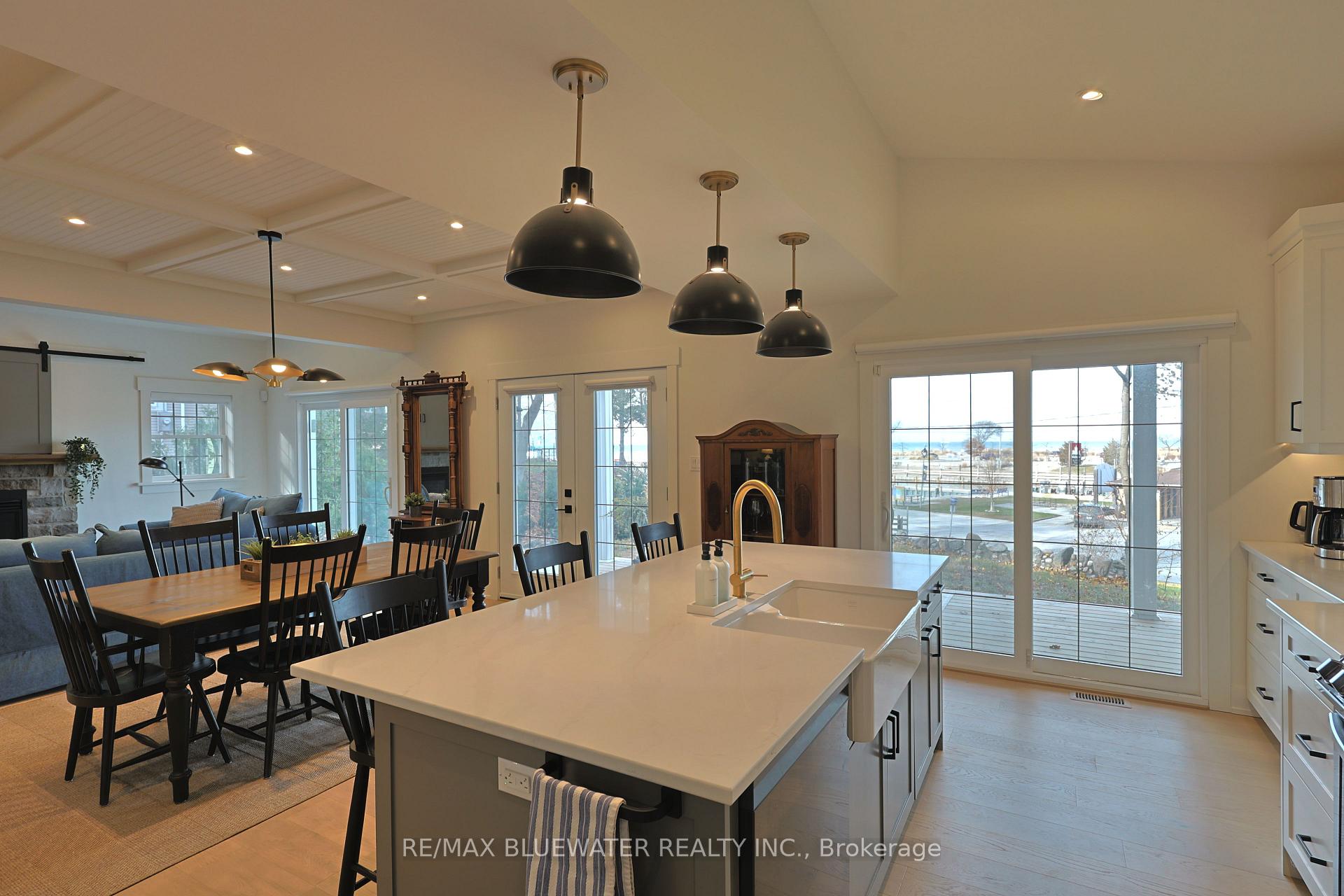ONE OF A KIND LAKE & RIVER VIEW HOME STEPS FROM THE SANDY BEACHES OF LAKE HURON JUST COMPLETED IN 2024 IN GRAND BEND! Welcome to 82 River Road, Grand Bend where you find a truly unique home + location combo within walking distance of all Grand Bend's best amenities including the sandy shores of Lake Huron. Completed in 2024 offering 1,435 sq ft of highly appointed living space! Nicely treed spacious .34 acre property with room for lots of parking. Roadside covered deck for a great space outside to relax on those days when the wind is coming off Lake Huron. Step inside to your entrance foyer with shiplap accent wall and double closet. Flowing into the open concept great room with engineered hardwood flooring throughout and two sliding doors plus garden door to take in all the incredible Lake Huron & marina views. Spacious kitchen with large center eat-up island that offers a farmhouse style sink. Lots of cabinetry and space for storage along with the walk-in pantry. Black stainless steel appliances, quartz counters and timeless tiled backsplash are just a couple more special mentions to note in the kitchen. Expansive dining area with custom coffered ceiling. Living room with vaulted ceiling and gas fireplace which has a stone surround plus a hidden barn door TV slot above! Main floor bedroom with lots of windows for natural light. Main floor two piece bathroom offers farmhouse style sink and heated floors with laundry closet. Second floor primary suite with cathedral ceilings and walk-in closet offers more incredible views of Lake Huron & the marina. The deluxe five piece ensuite is truly special with gold accents, double vanity, walk-in glass tiled shower with built-in seat, floating tub and heated floors! This private location is just steps from the Cottage Cafe, fifty steps to the sandy shores of Lake Huron & a short walk to downtown. Relax on your lakeview deck with a glass of wine admiring world famous Lake Huron sunsets overlooking the activities on the river!