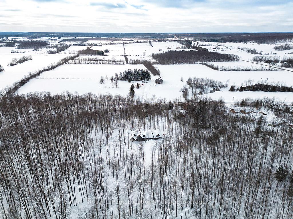 Private sanctuary on 25 acres of serene Meaford countryside, where mature trees and tranquility await. This custom-built retreat offers a blend of luxury and comfort, designed to embrace the beauty of its natural surroundings. A short drive to Downtown Meaford and Georgian Bay. Step inside to discover the heart of the home a great room with vaulted wood-covered ceilings, floor-to-ceiling windows framing views of majestic trees, and a striking stone surround fireplace. The open concept gourmet kitchen features granite counters, a 4ft range, built-in microwave, bar fridge in the island, and a convenient pot filler. Adjacent is the dining space with a walkout to the back deck, perfect for alfresco dining. The main floor also hosts a guest bed, den space, convenient laundry room and mudroom with access to the oversized garage. Throughout the main floor,3/4 inch special walnut plank flooring adds warmth and elegance. All bathrooms are beautifully appointed with granite counters and heated flooring beneath polished ceramic tiles. Upstairs, the upper level offers additional living space with a primary suite, guest bed, 3pc bath, and a versatile bonus room. The spacious primary suite features a covered balcony overlooking the lush grounds, WIC, and a luxurious 3pc ensuite complete with heated floors, heated towel rack and a freestanding tub. Additional features include a durable steel roof, a 10kw backup generator, and 1000sqft drive shed with 200 amp service offers plenty of storage for seasonal toys or use as a workshop! Above the garage, a loft area offers storage or potential studio. The lower level has potential for a huge rec space. Outside, the expansive and private exterior invites exploration and quiet contemplation, making this property an ideal weekend getaway or full-time residence. Just 8 mins from dtown Meaford's restaurants, shops, and Georgian Bay. Thornbury is a short 18-minute drive away.