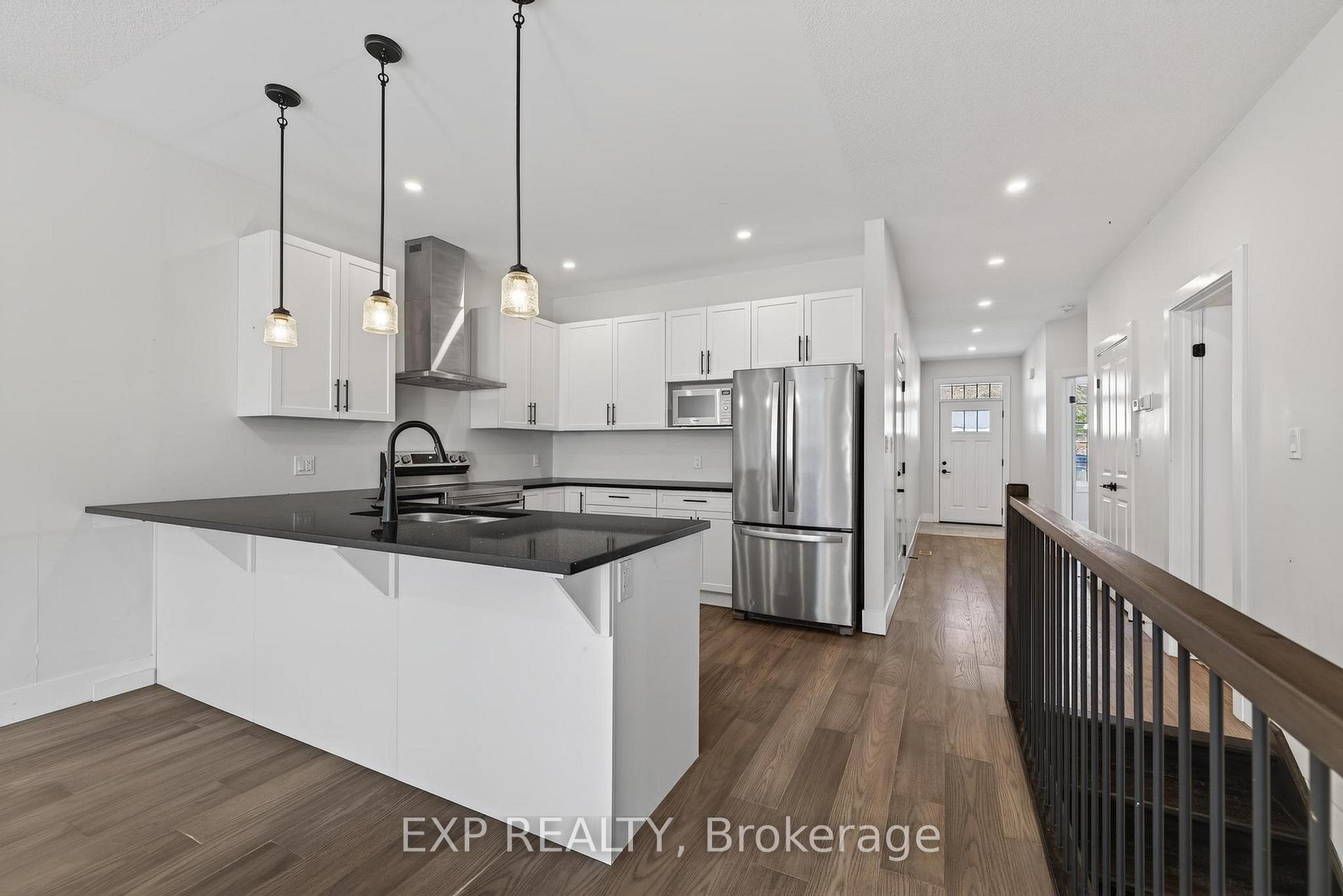 Welcome to 7 South Court Street W in Norwich - a refined bungalow-style end unit townhouse where modern design meets small-town charm. This elegant 2-bed, 1-bath residence is quietly tucked away on a quiet road, offering both privacy and sophistication just 20 minutes from Woodstock and 30 minutes to London. Step inside to soaring 9-ft ceilings, a spacious foyer with direct garage access, and a versatile front bedroom perfect for a guest suite, office, or nursery. The open-concept living space showcases a gourmet kitchen with quartz countertops, custom cabinetry, stainless steel appliances, and a central island, flowing seamlessly into a light-filled living area. From here, walk out to your private deck - an ideal retreat for relaxing evenings or weekend entertaining. The primary suite is complete with dual closets, a large window, and a spa-inspired 4-piece cheater ensuite. The lower level offers a bath rough-in and unlimited potential to design additional living space to your taste. Perfectly positioned near Norwich's finest amenities, schools, and parks, this residence blends comfort, convenience, and timeless style. An exceptional opportunity to own a luxury bungalow townhouse in one of Oxford County's most desirable communities.