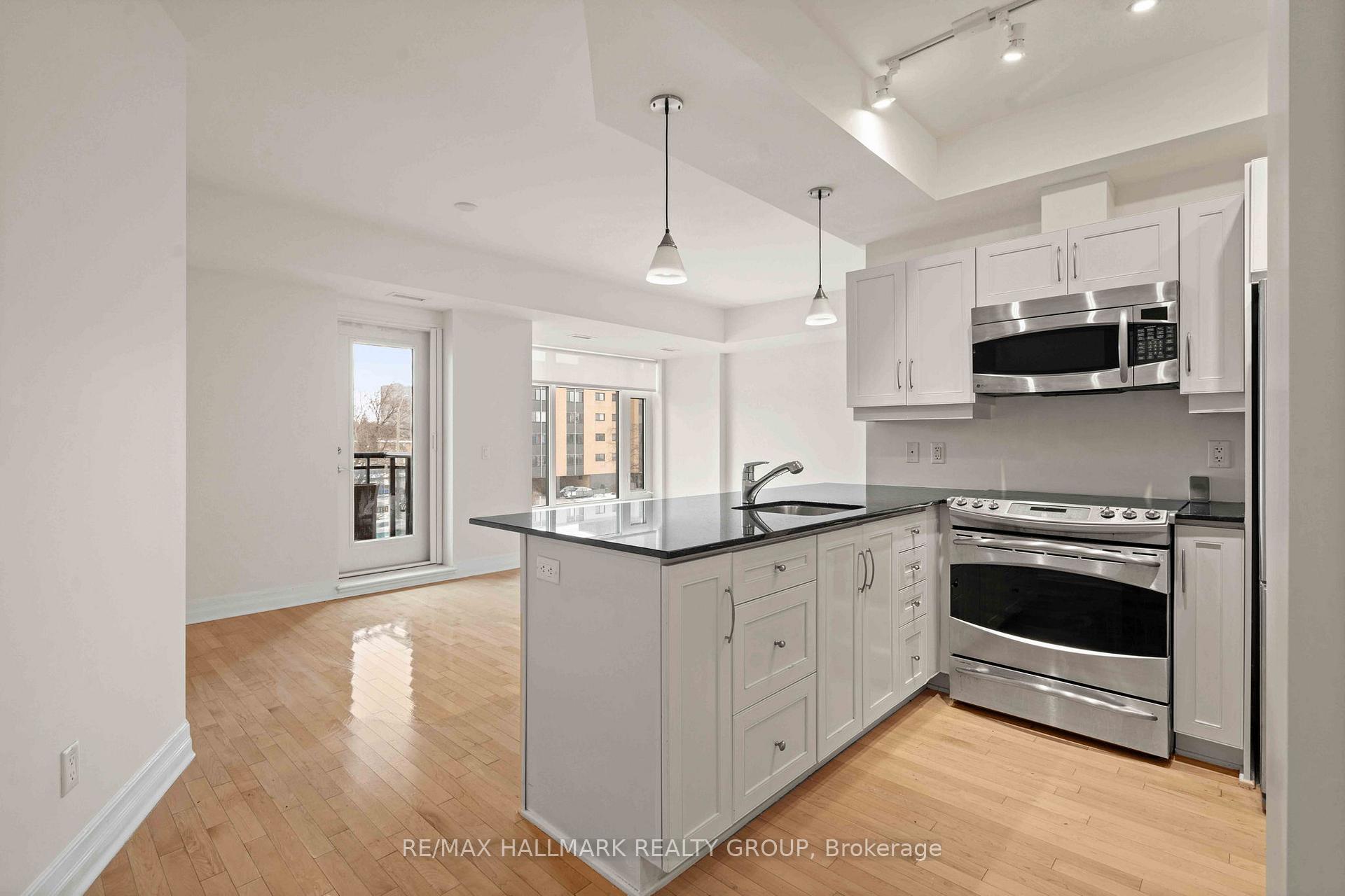 Welcome to The Continental, a sought-after condominium built by Charlesfort and designed by renowned architect Barry Hobin. This bright and stylish 1-bedroom + den suite offers 820 sq. ft. of open-concept living, and beautiful hardwood floors throughout. The kitchen features stainless steel appliances, granite countertops, and ample cabinetry, flowing seamlessly into the spacious living and dining areas. Step out to your south-facing balcony and enjoy natural light all day long. The versatile den makes a perfect home office or guest room. The full bath provides dual access from both the foyer and the primary bedroom for added convenience. Additional features include in-suite laundry, underground parking, and a storage locker. Residents enjoy premium amenities such as a state-of-the-art fitness center, party room, and incredible rooftop terrace with BBQ. Unbeatable location-just steps to the LRT, walking and biking trails, top-rated schools, Westboro Village, Carlingwood Mall, and more. Location. Lifestyle. Luxury. It's all here at The Continental, 75 Cleary Avenue, Suite 302. Some photos virtually staged.
