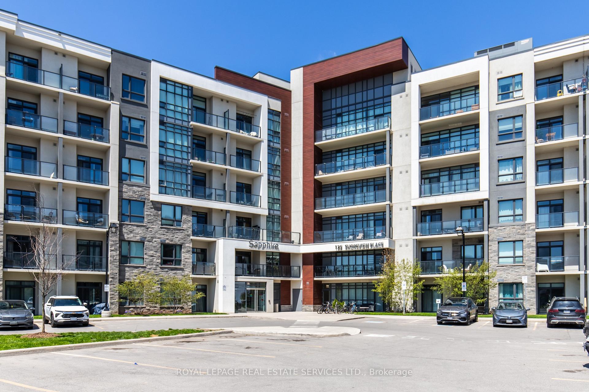 PENTHOUSE Living at the Lake! Welcome to Sapphire at Waterfront Trails, where waterfront living truly shines. This top-floor 2-bedroom, 2-bath PENTHOUSE suite offers the ultimate blend of style, comfort, and vacation-inspired living, every single day. Stunning Lake Views from the Balcony and Living Areas!Soaring 10-foot ceilings and a bright open floor plan create an airy, inviting atmosphere. The modern kitchen is designed to impress with quartz countertops, stainless steel appliances, extended cabinetry, and a striking backsplash, making it perfect for both everyday living and entertaining.The spacious primary bedroom features a walk-in closet and private ensuite, while the second bedroom and full bath offer flexibility for guests, a home office, or additional living space. Contemporary vinyl flooring throughout the condo, in-suite laundry, modern blinds on all windows, and stylish finishes complete the space. Every room has a window for abundant natural light!Step outside to your private extended balcony and soak in the lake breeze, or head up to the breathtaking rooftop terrace for panoramic views of Lake Ontario-spectacular sunrises and sunsets included.This well-managed building offers premium amenities including a fully equipped gym, party room, bike storage, guest suites, and geo-thermal heating and cooling. Enjoy 1 underground parking space (#116) and 1 locker conveniently located on the 6th floor (locker number to be confirmed).Located steps from the Waterfront Trail, beach strip, and lake access, you can walk, bike, or even swim right at your doorstep. This is more than a condo-it's a lifestyle. Live where others vacation. Welcome home to Sapphire.