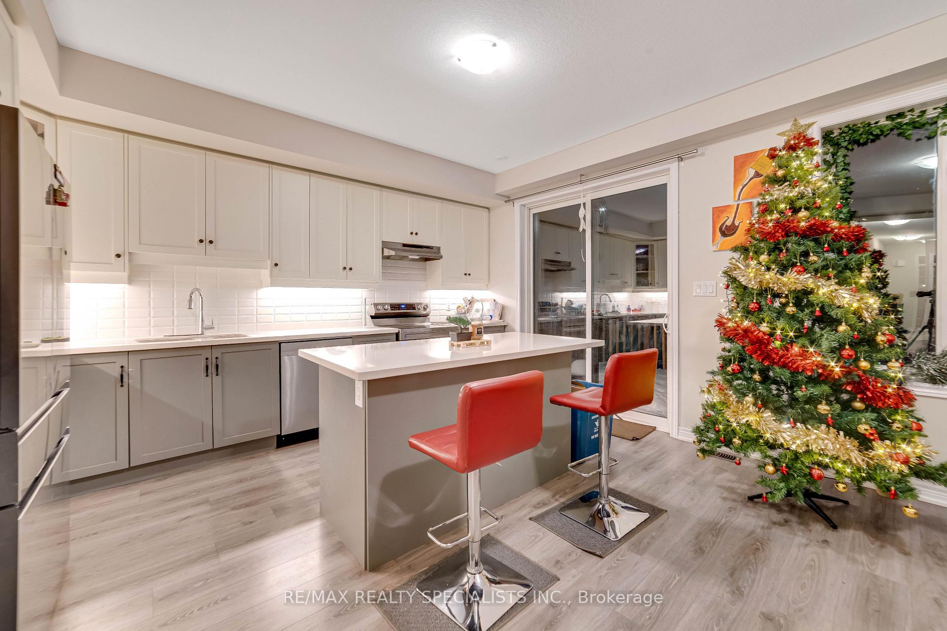 Located in a highly desirable neighbourhood, this beautiful 2-storey townhome backs onto a serene ravine and offers a walk-out basement. The bright open-concept main floor features upgraded hardwood flooring, large windows, and a stylish kitchen with upgraded cabinets, quartz countertops, stainless steel appliances, built-in microwave, modern backsplash, and an oversized island. Walk out to a large deck overlooking the ravine-perfect for relaxing or entertaining. The oak staircase leads to the second level with hardwood in the hallway, a convenient upper-level laundry, a primary bedroom with a private ensuite, two additional spacious bedrooms, and a full bath. Additional highlights include double-car driveway parking and a central vacuum rough-in. Close to parks, trails, shopping, public transit, Cambridge Mall, and major highways.