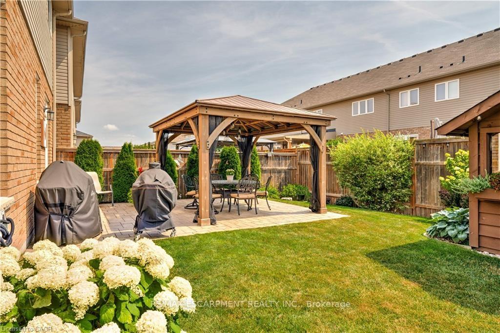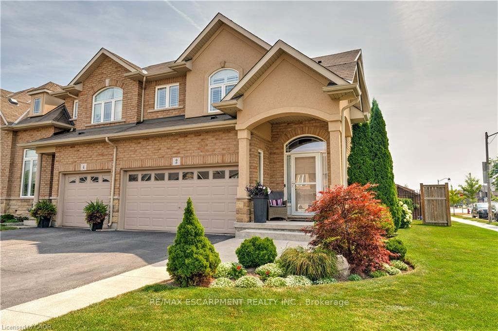 Stunning freehold 1655 SQ ft END UNIT townhome with a double car garage located in the award-winning Summit Park neighbourhood, close to schools and shopping, Premium private large lot beautifully landscaped with irrigation system and enclosed backyard, features a stone patio, gazebo, storage shed, perennial gardens and a private side entrance which offers a tranquil space for relaxation and entertainment. Truly a serene backyard retreat. The main level is complemented by a welcoming foyer, powder room, and inside entry from the 2 car garage. Sun filled open-concept layout features large windows, California Shutters, pot lighting and is perfect for gatherings and everyday living. The kitchen is complete with gas stove, sleek granite countertops, stainless steel appliances and breakfast bar. Upstairs, you'll find three generously sized bedrooms. The primary suite features a walk-in-closet and ensuite. An additional 4-piece bathroom, laundry room complete the upper level. Unspoiled basement awaits your creativity and finishing touches. Ideal location, close to schools, shopping, HSR, parks, conservation area, major highways, and more.