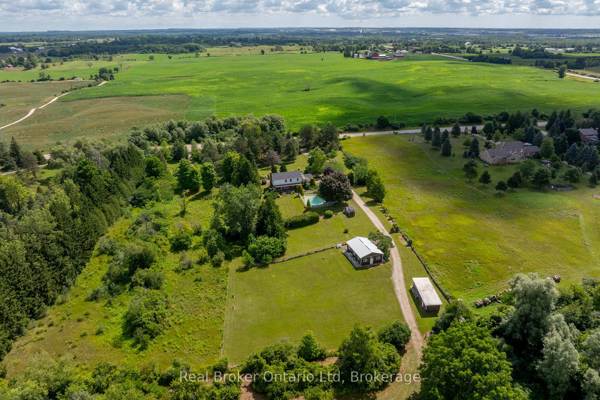 Stop the car!! An incredible opportunity awaits to own a stunning piece of property in a prime location just south of Guelph and only minutes to the 401. Offered for the first time in nearly 50 years, this cherished family estate spans over 9 acres with a depth of almost 1300 feet, offering a serene mix of forest and open fields and surrounded by other large properties for ultimate privacy. This expansive home offers ample space and opportunity to update and create your own dream. A morning coffee can be enjoyed on the covered front porch, and at the end of the day you can experience beautiful sunsets on the back deck. Explore winding trails, relax by the in-ground pool, or take advantage of the existing outbuilding formerly a dog kennel with endless potential for other uses. The approximately 3000 sq ft two-storey home features 4 spacious bedrooms and 4 bathrooms, including a large, bright eat-in kitchen with a centre island, a family room, living room, and a versatile converted garage space perfect for additional living, storage, or returning to a double garage. The basement with a separate entrance opens up even more possibilities. Beautifully landscaped and welcoming from the moment you arrive, this property offers a rare blend of peaceful country living with exceptional convenience - your private escape is here.